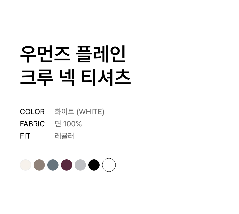 우먼즈 베이식 크루 넥 티셔츠 [화이트]