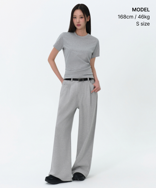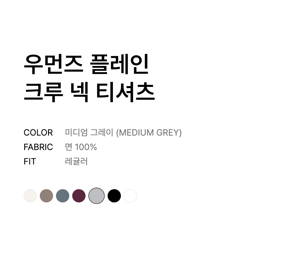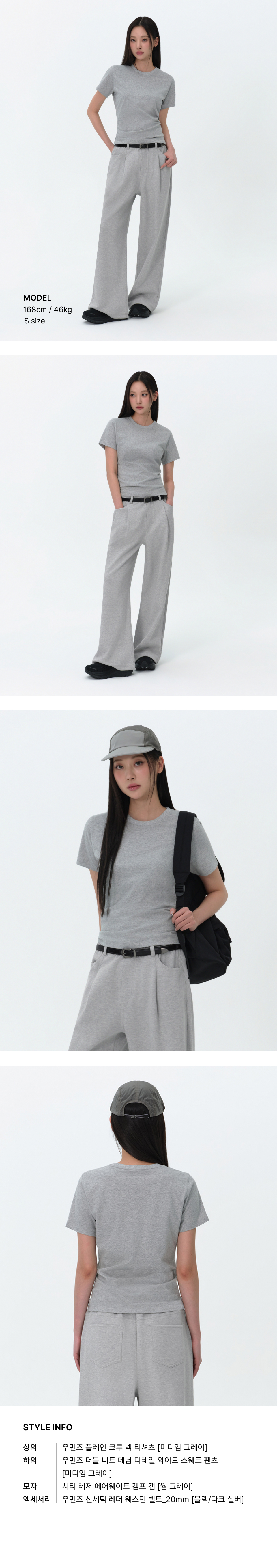 우먼즈 플레인 크루 넥 티셔츠 [미디엄 그레이]