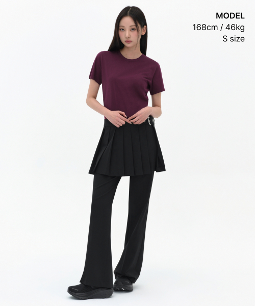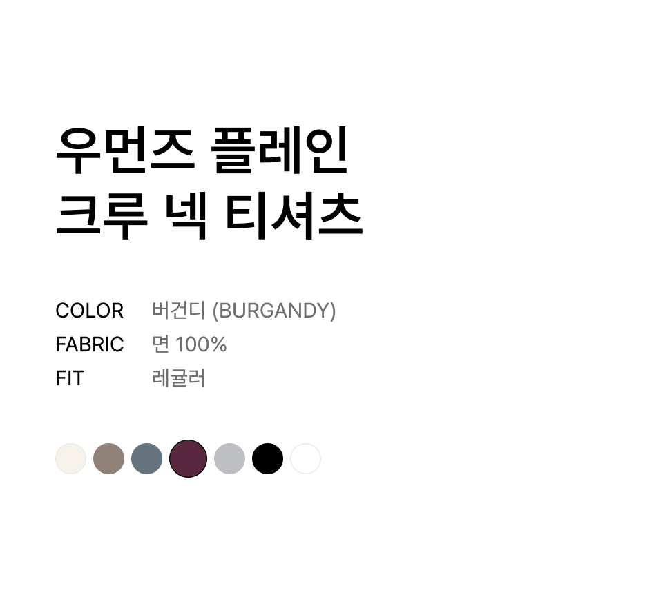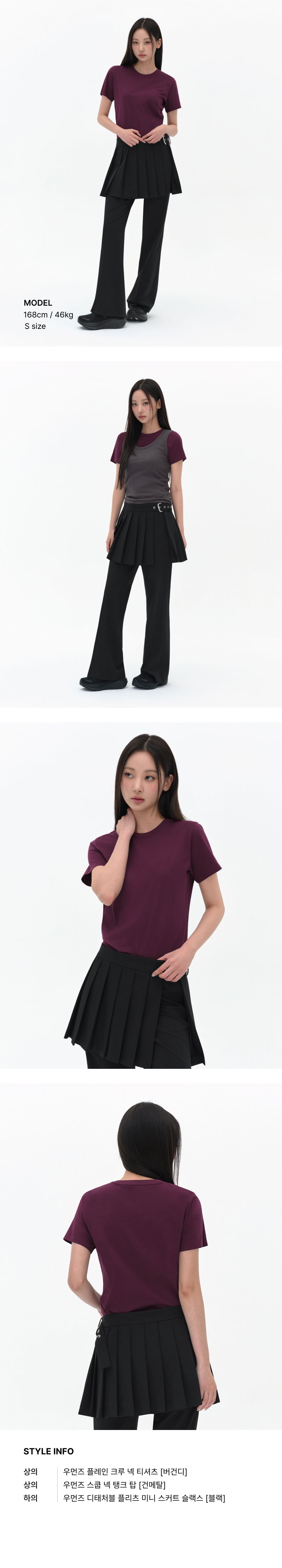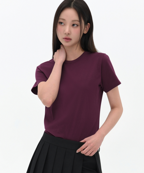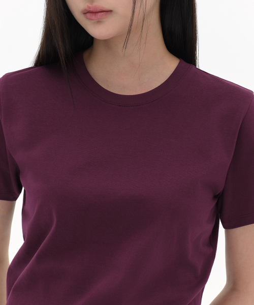 우먼즈 플레인 크루 넥 티셔츠 [버건디]