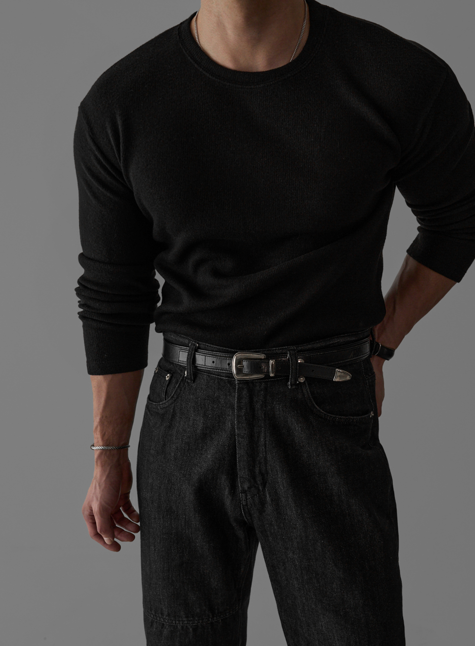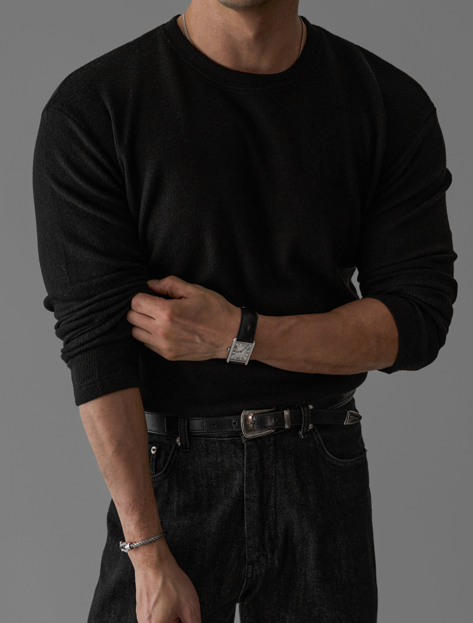 - 몸에 자연스럽게 맞는 과하지 않은 머슬핏 실루엣