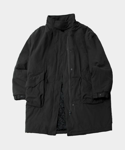 필드 베이직 하이넥 빅 포켓 피시테일 롱 야상 패디드 코트 자켓 [블랙]