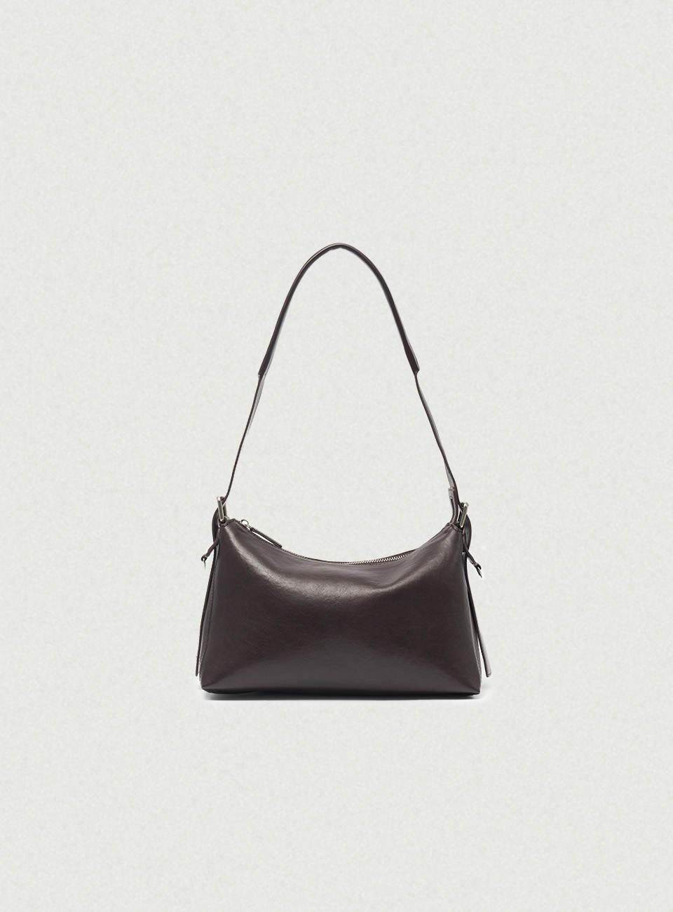 원 스트랩으로 착용 가능한 지퍼 잠금 방식 사양의 숄더백