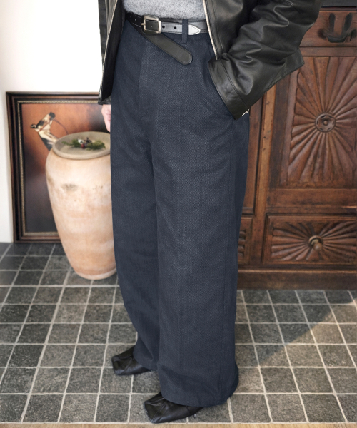 헤링본 와이드 스트링 팬츠-3Color
