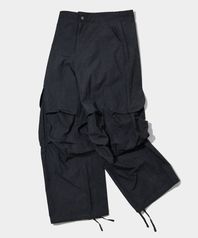 멀티 포켓 피그다잉 워싱 카고 와이드 스트링 팬츠 [블랙]