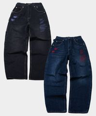 컬러 자수 스티치 포인트 벌룬 스트레이트핏 D링 데님 워싱 팬츠 _ 2COLOR