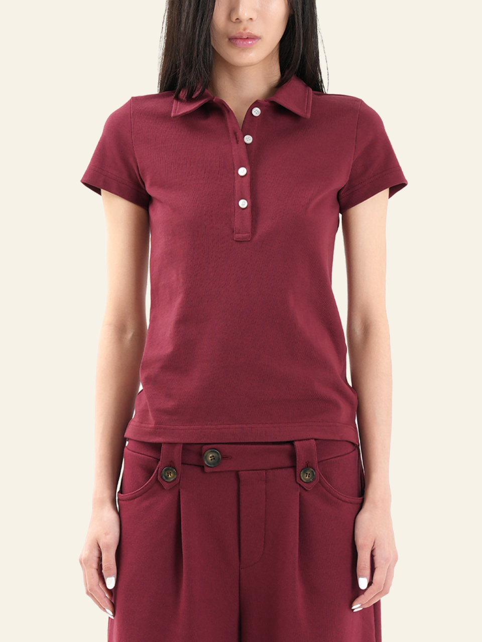 S: 총기장 59.5cm / 어깨 너비 33.5cm / 가슴 너비 40cm / 허리 너비 37.5cm / 소매 길이 14.5cm