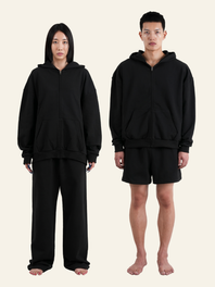 M: 총기장 54.8cm / 어깨 너비 45.3cm / 가슴 너비 55.5cm / 소매 길이 64.5cm / 후드 높이 35.8cm