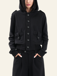 L: 총기장 56.1cm / 어깨 너비 46.6cm / 가슴 너비 58cm / 소매 길이 65.5cm / 후드 높이 36.3cm