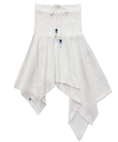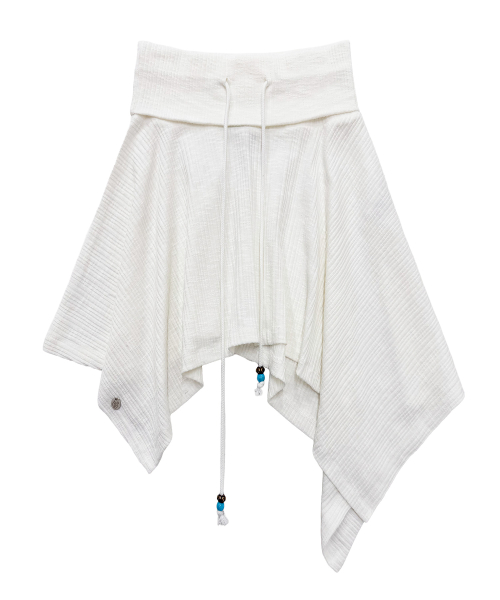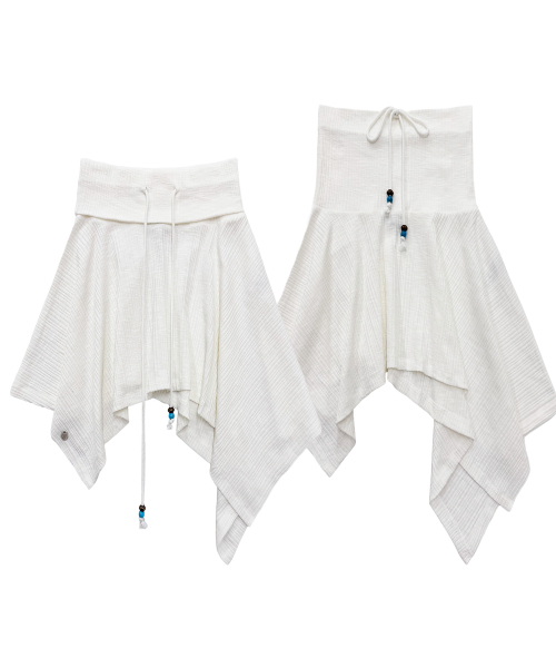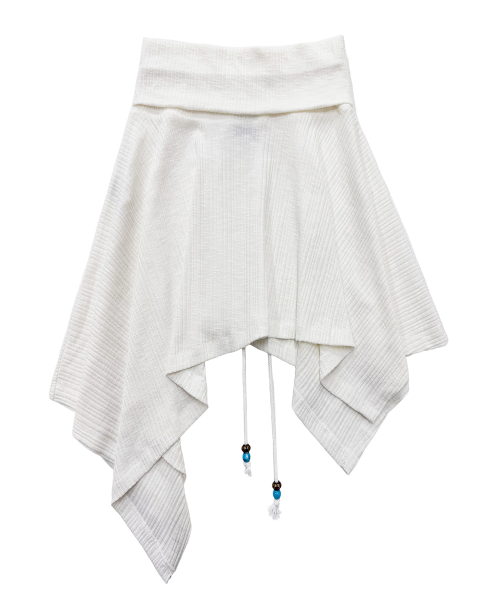 언발란스 튜브탑 스커트. 허리 스트링과 배색장식을 가미한 골지스커트.
