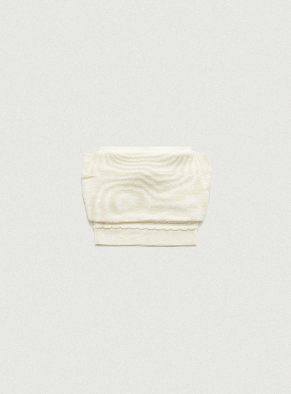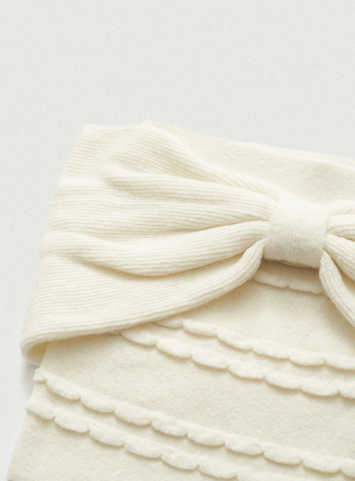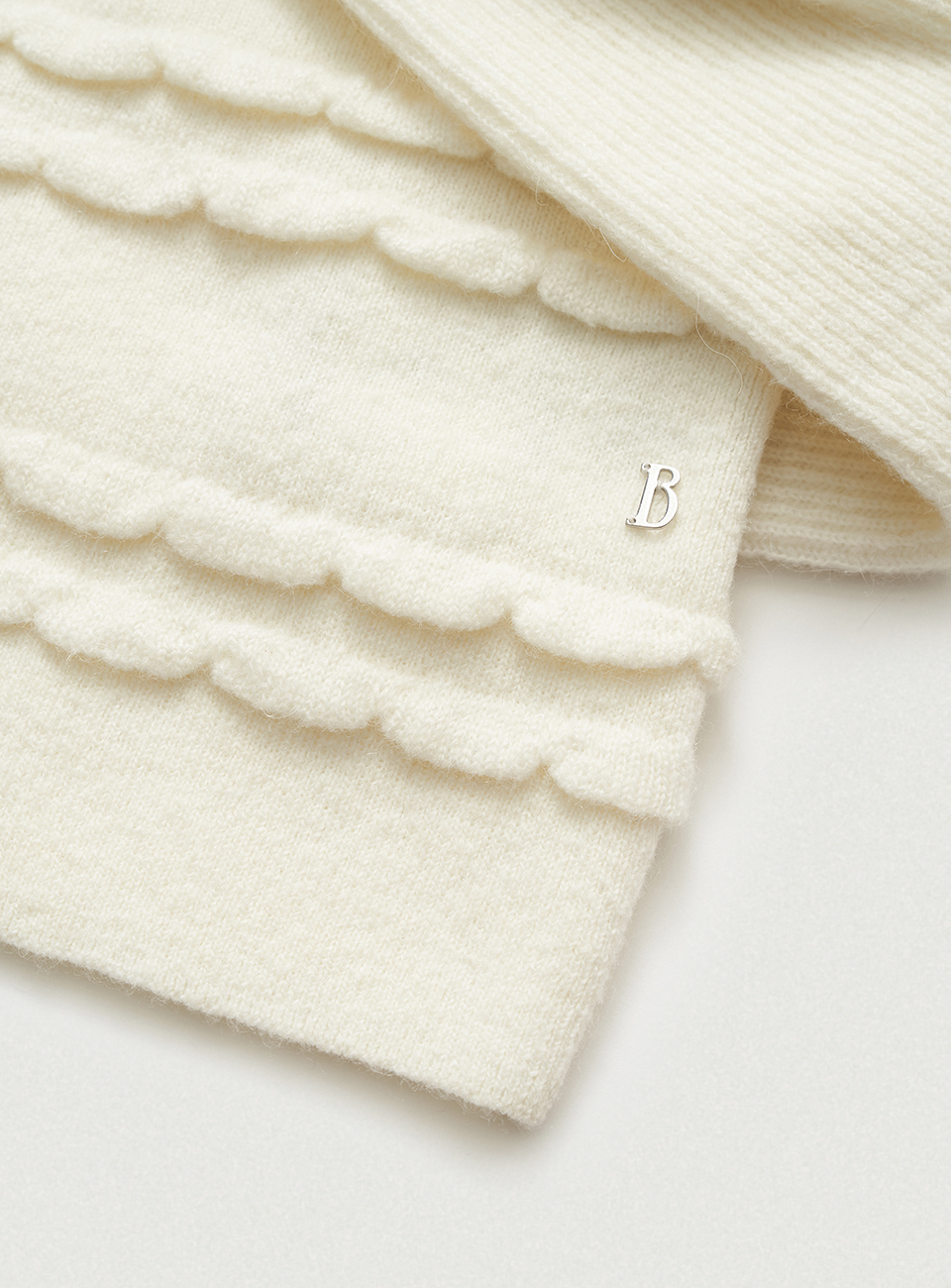 아이보리 컬러의 부드럽고 탄탄한 텍스처가 특징인 울 혼방 니트 패브릭