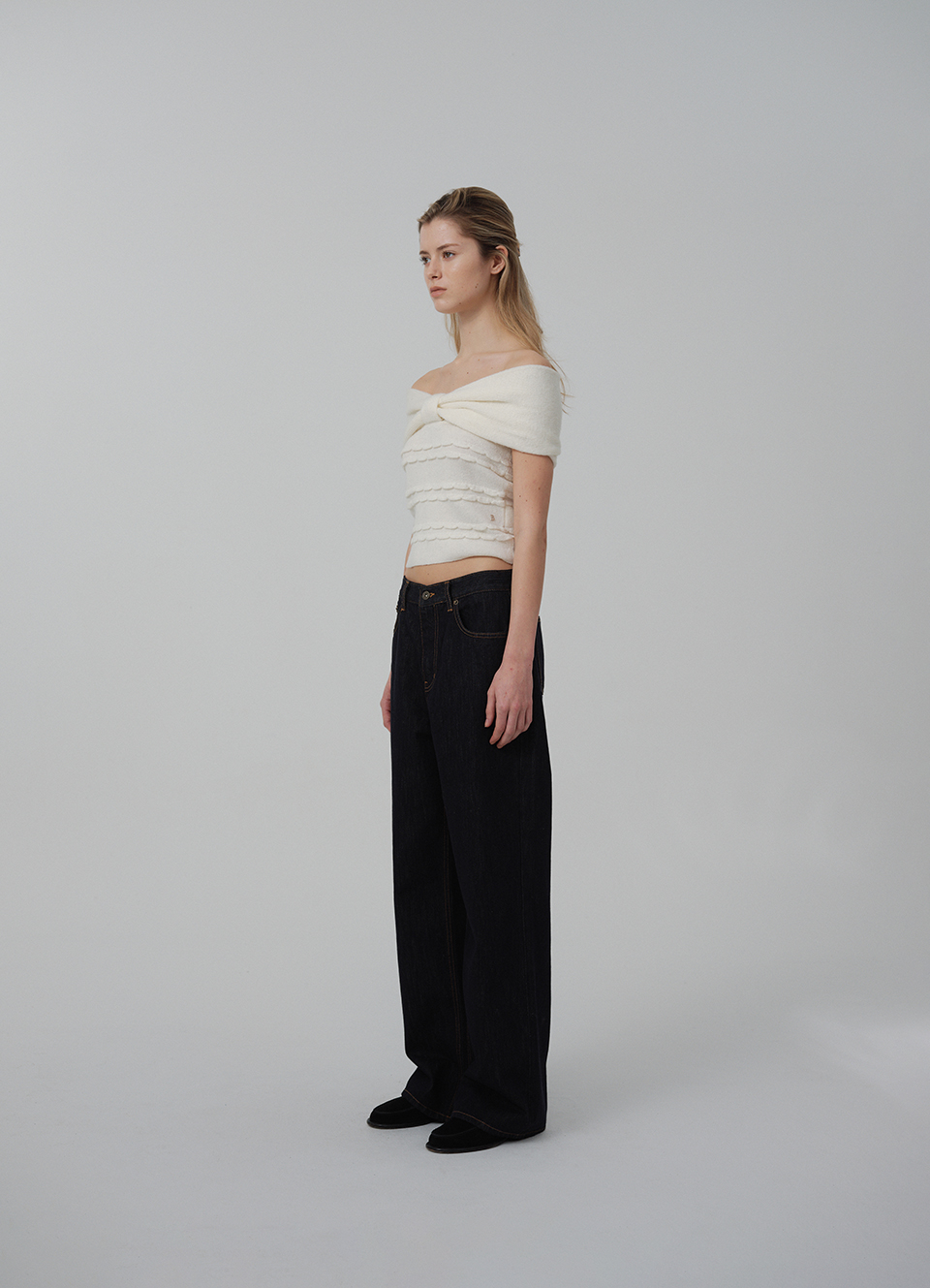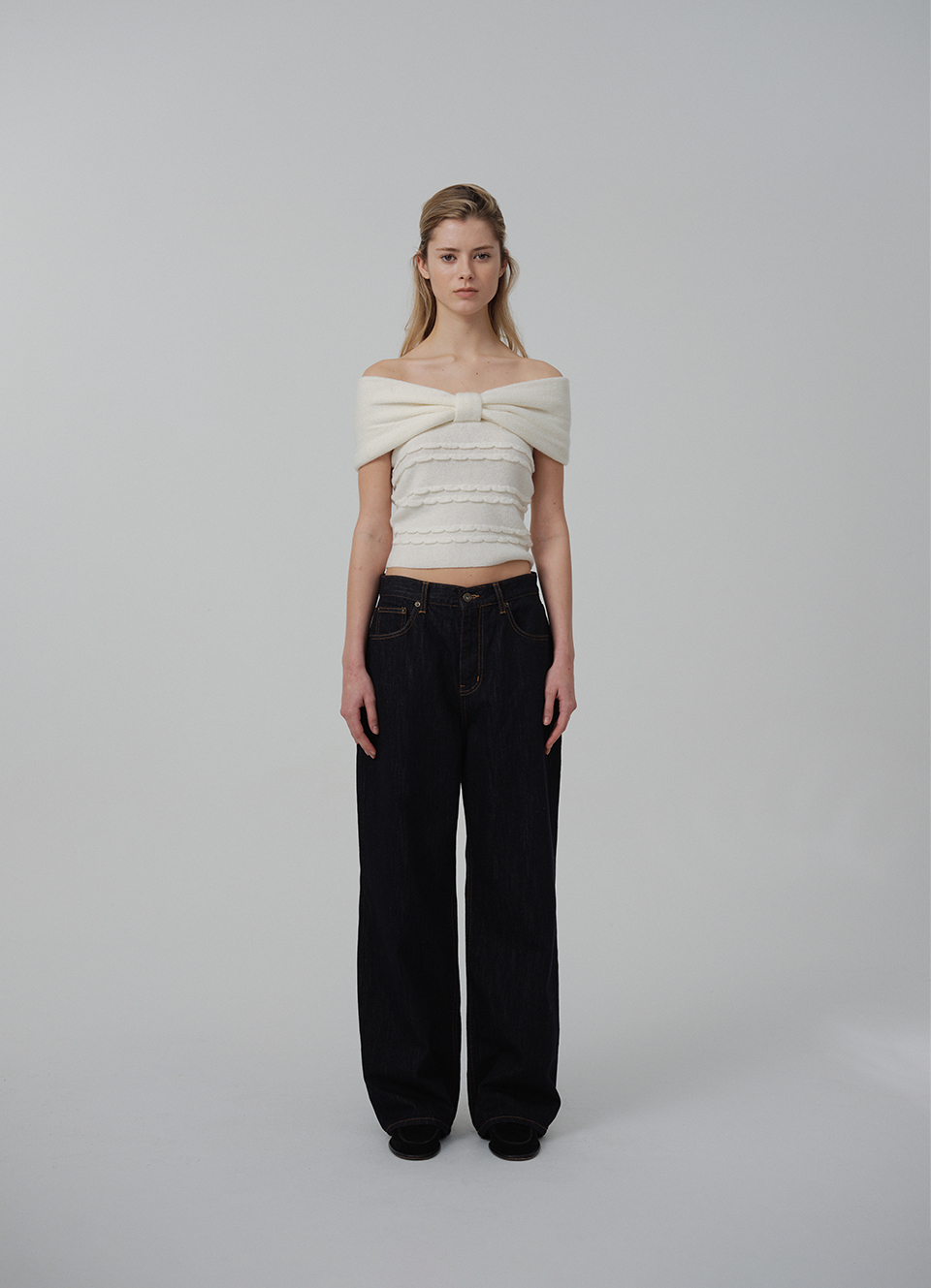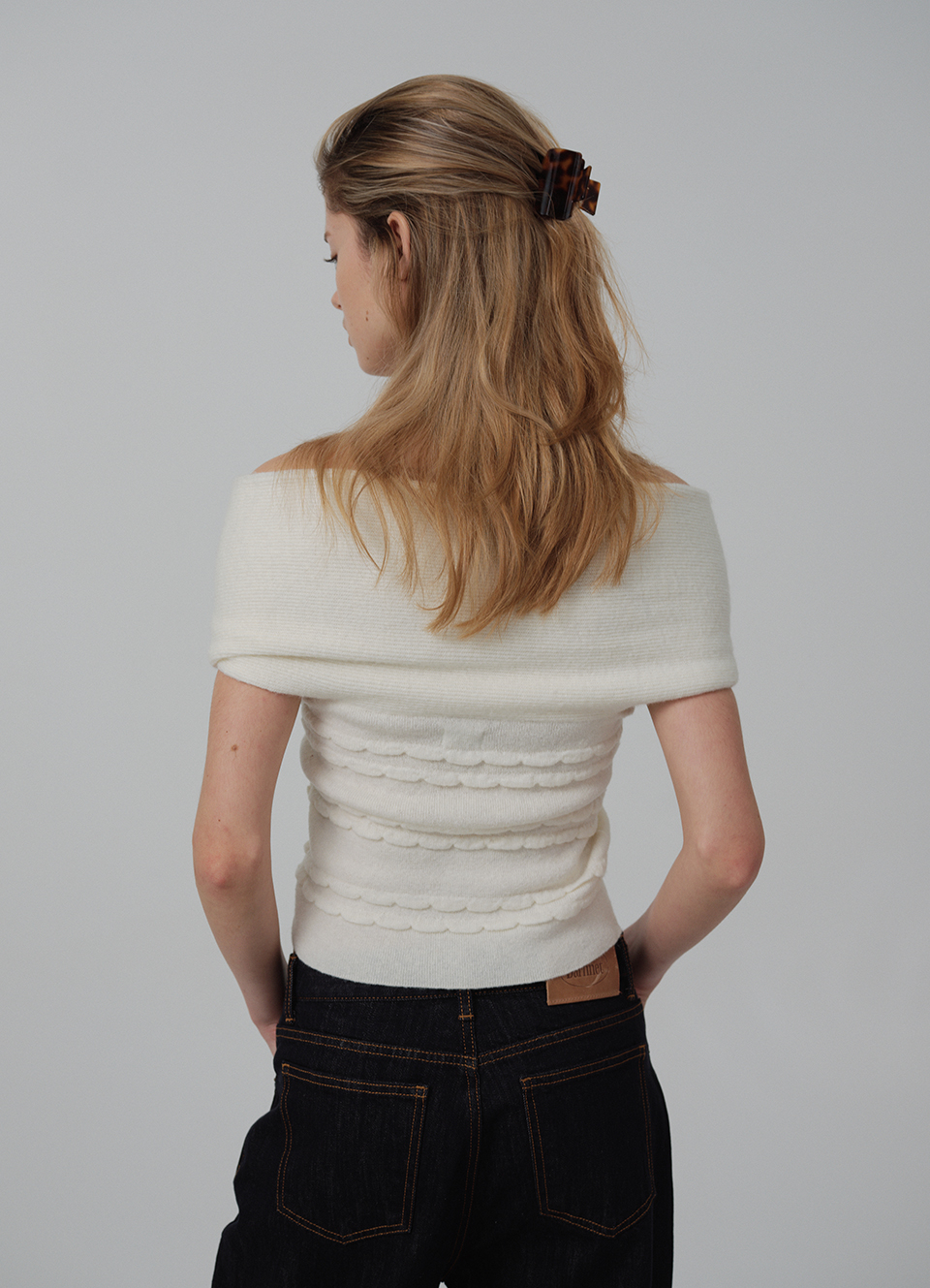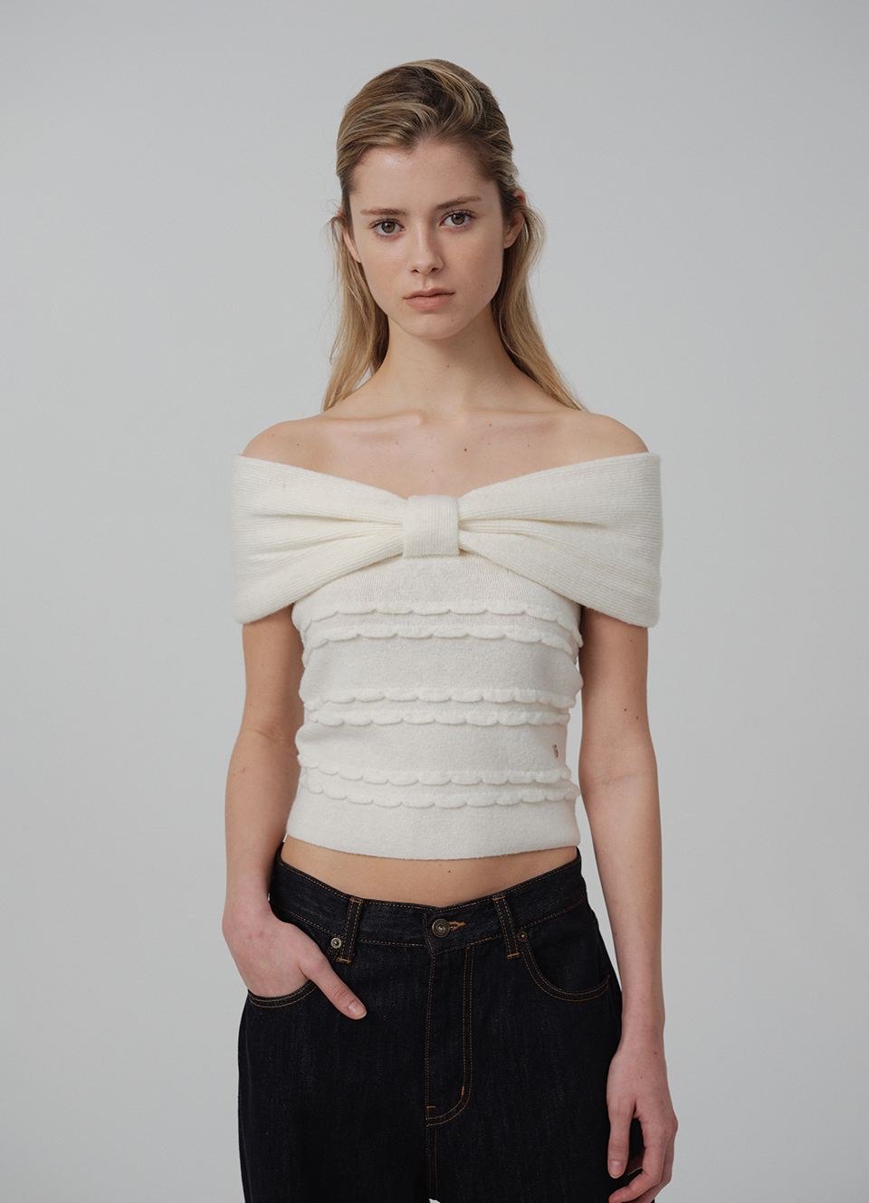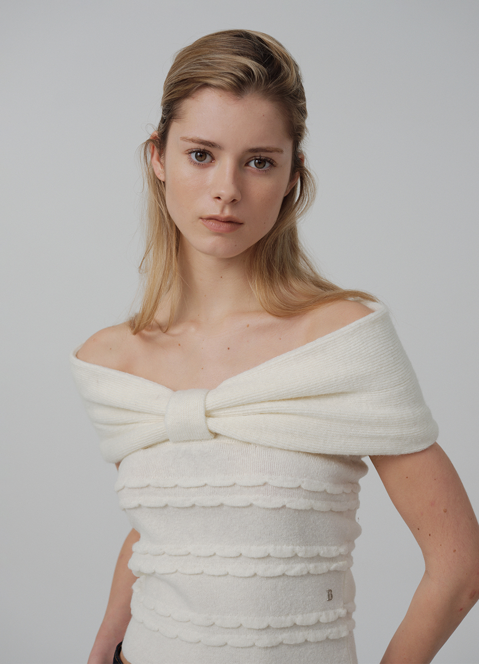 스퀘어넥과 오프 숄더 그리고 민소매 사양의 니트 탑 타입