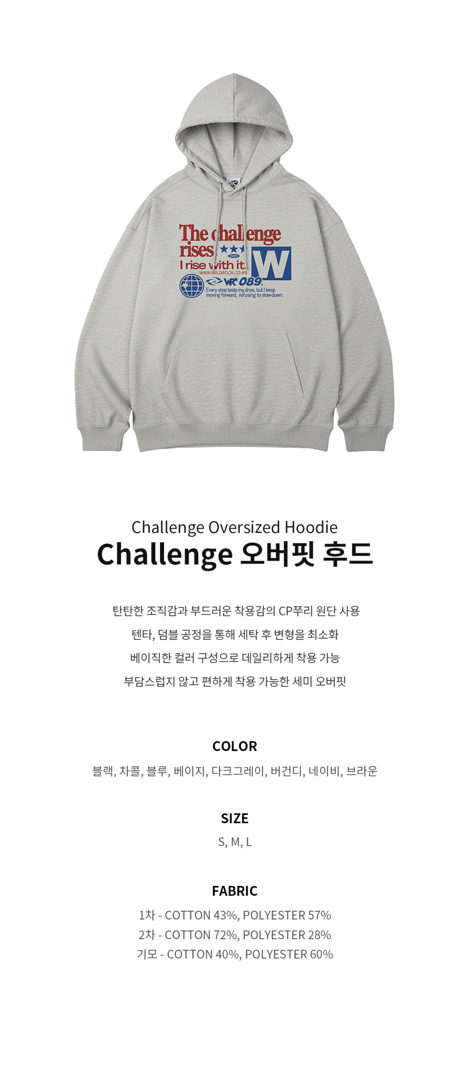 (기모추가) Challenge 오버핏 후드_8 COL