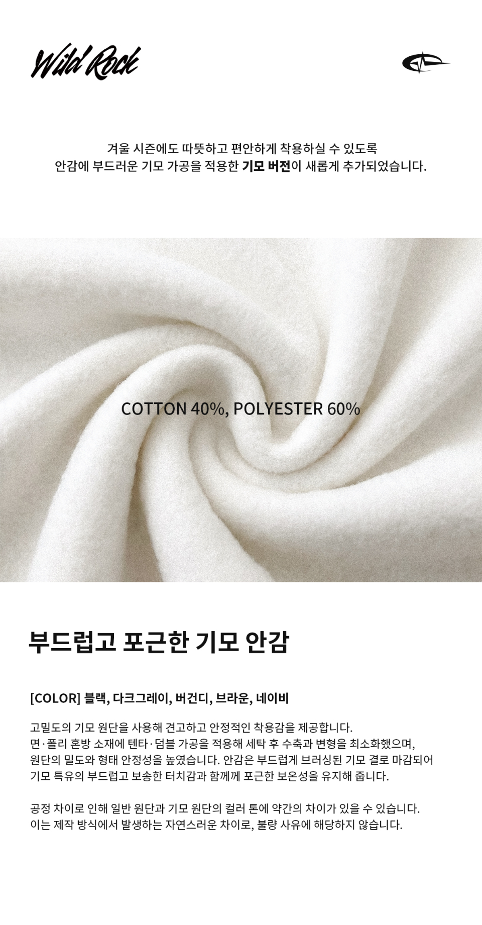 와일드락(WILDROCK)은 '樂 will never die'를 모토로 거친 세상을 즐겁게 살아가는 이들을 위한 스트릿 패션 브랜드입니다. 나의 무드와 맞는 음악을 찾아가는 과정처럼 자신과 맞는 편안한 스타일의 패션을 찾아가길 바라는 마음을 담았습니다.