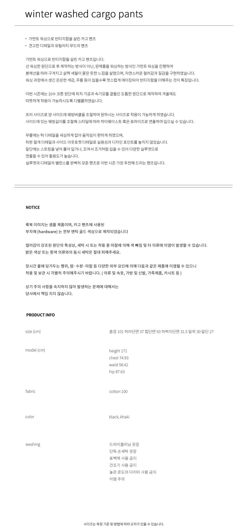 윈터 워시드 카고 팬츠 (카키)