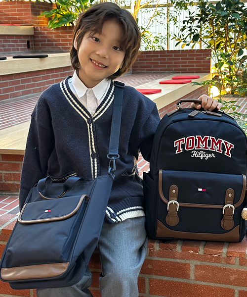 *보조 가방: OS/25*29*11cm 정면의 플라워 패턴 TOMMY HILFIGER 자수 로고로 브랜드의 아이덴티티를 강조한 책가방 세트입니다.