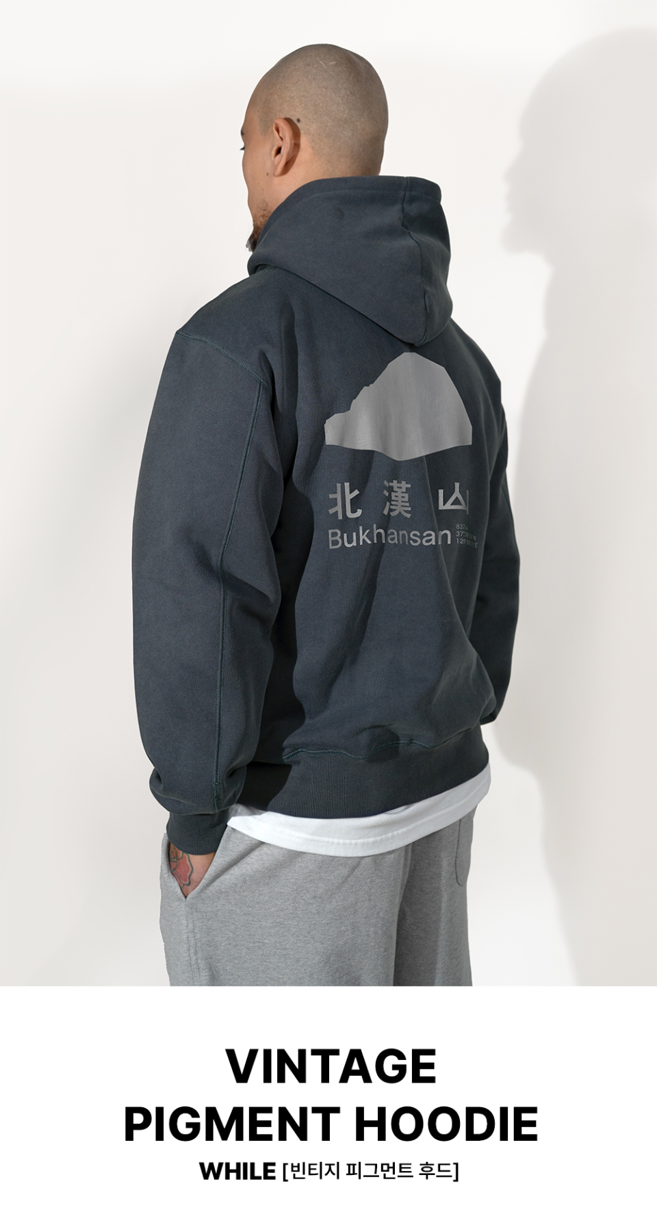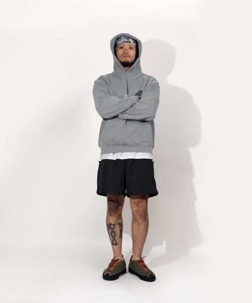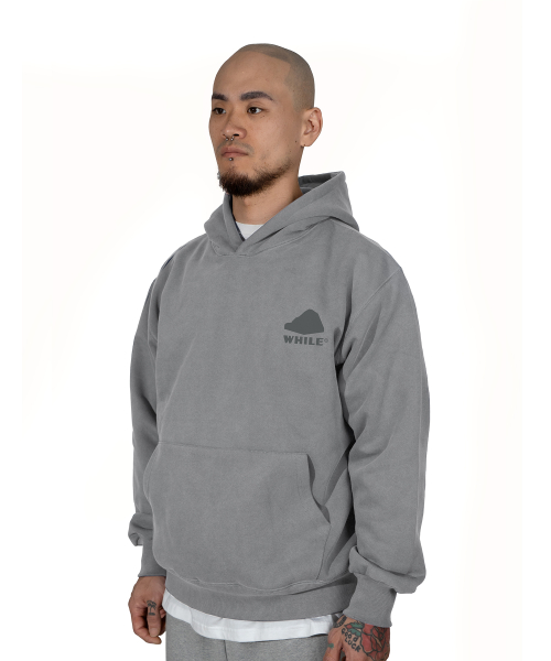 산 시리즈 빈티지 피그먼트 후드 기모티셔츠 (STONE GREY)