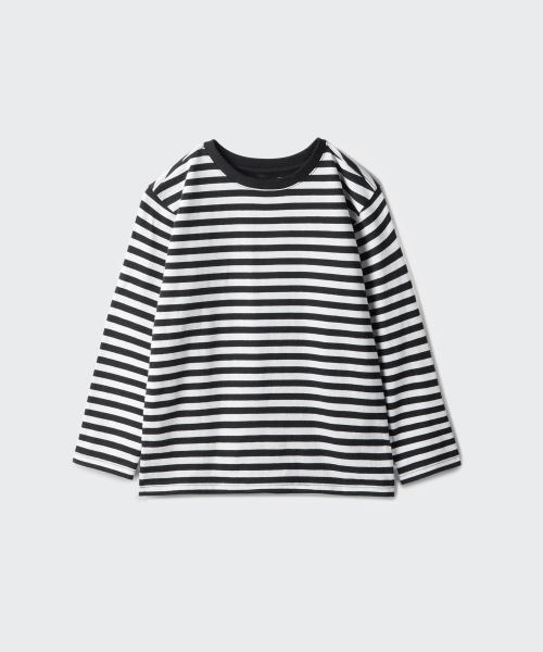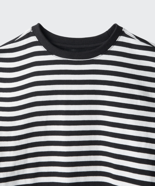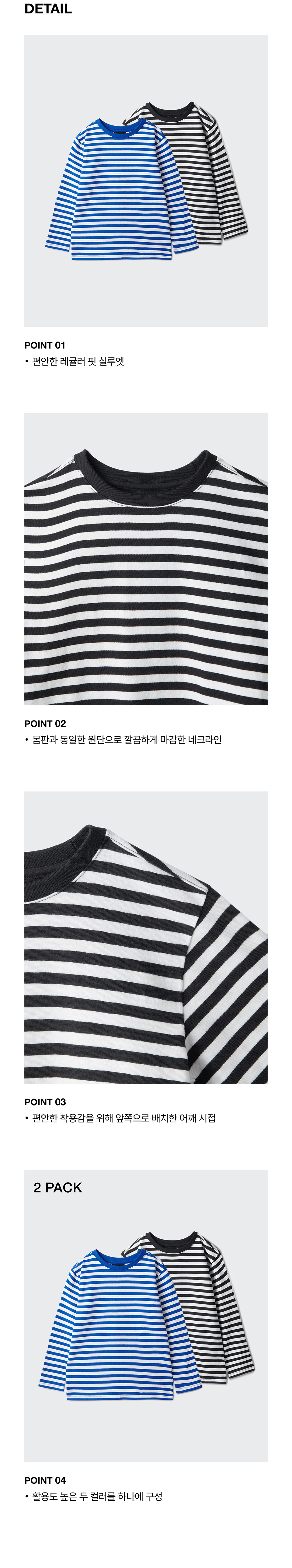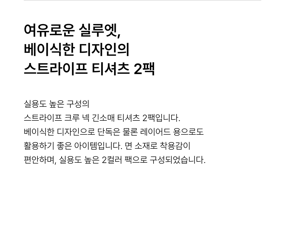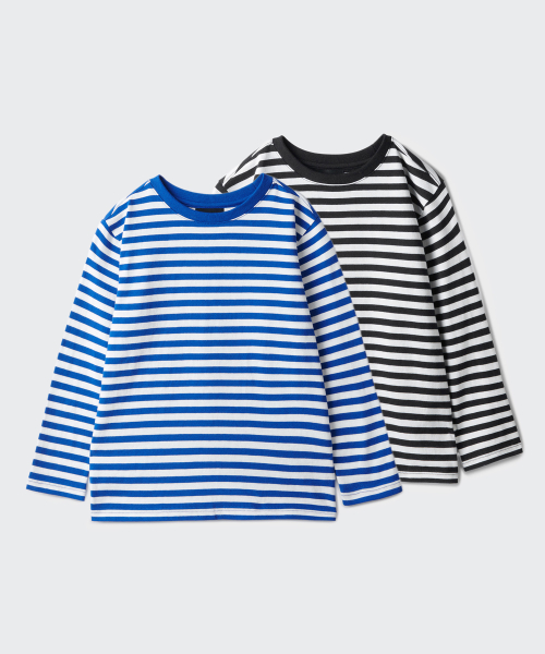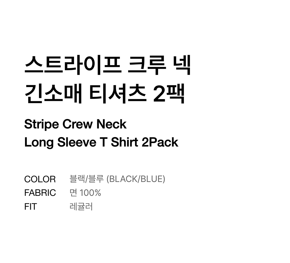 스트라이프 크루 넥 긴소매 티셔츠 2팩 [블랙/블루]