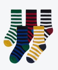 트리컬러 스트라이프 크루 삭스 5팩 [멀티]
