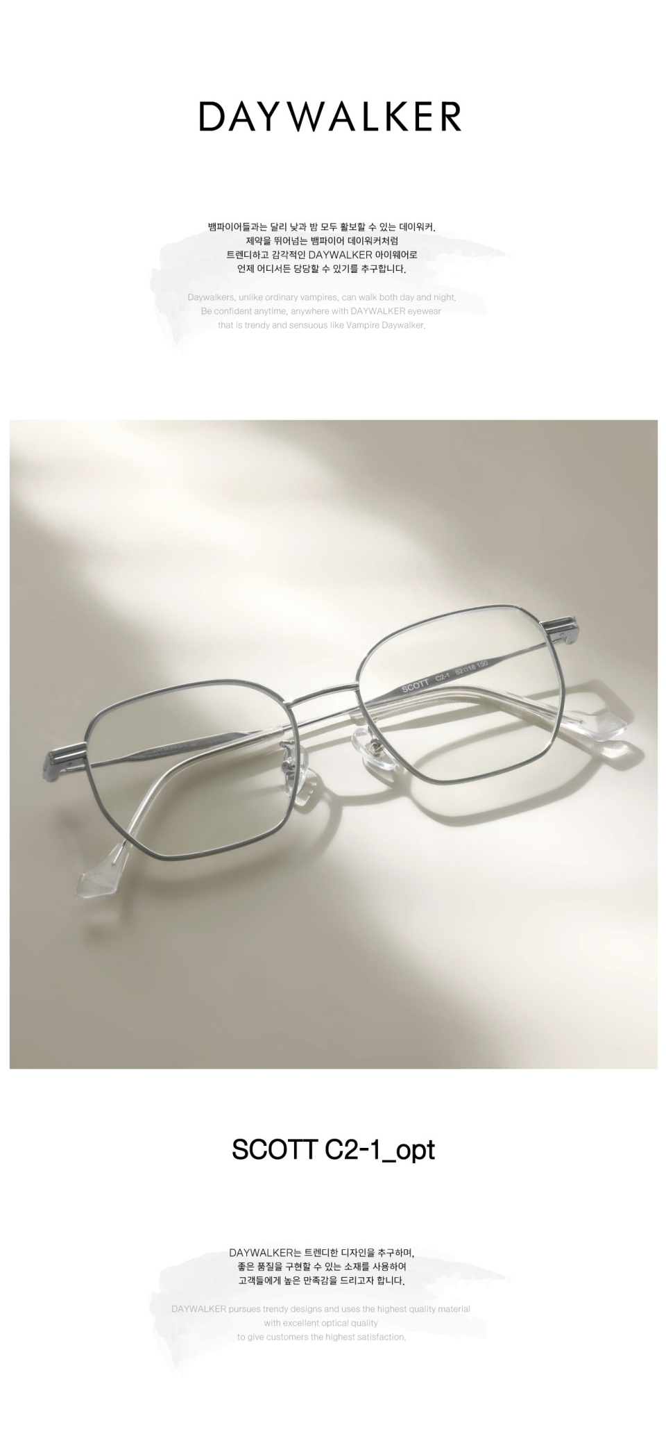 데이워커(DAYWALKER)는 낮과 밤 모두 활보할 수 있는 뱀파이어처럼, 트렌디하고 감각적인 디자인으로 언제 어디서든 당당할 수 있기를 추구합니다.