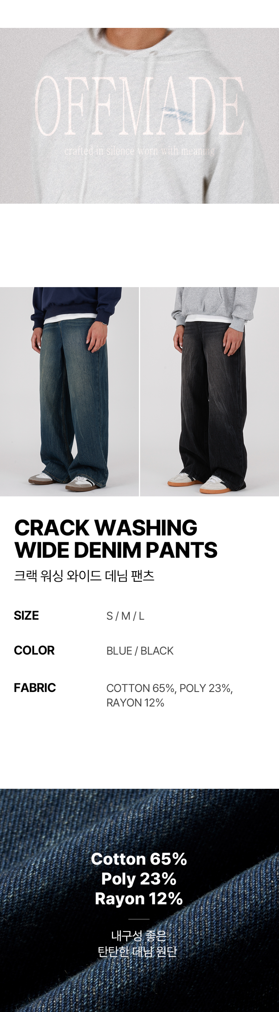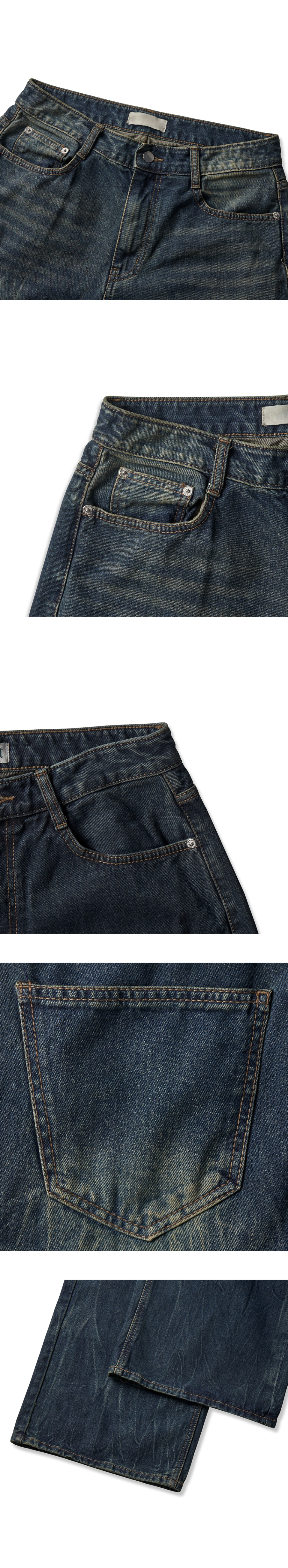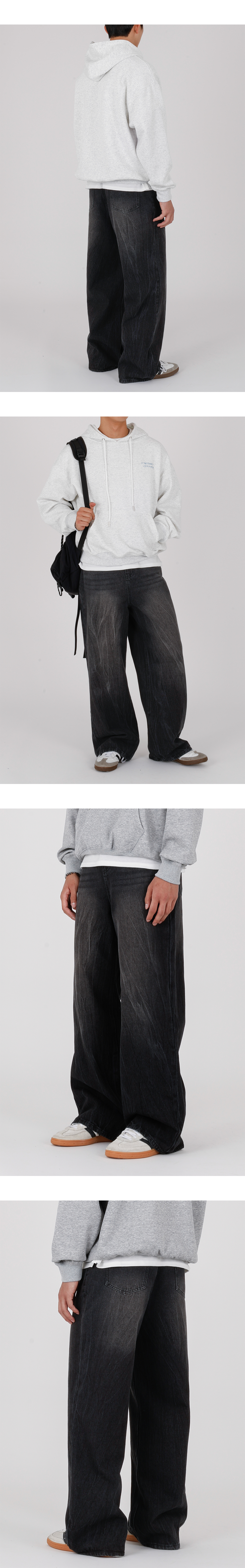 크랙 워싱 와이드 데님팬츠 커브드 청바지