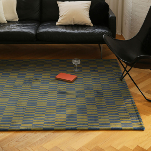태넷 거실카페트 체크 패턴 워셔블 단모 극세사 거실 러그