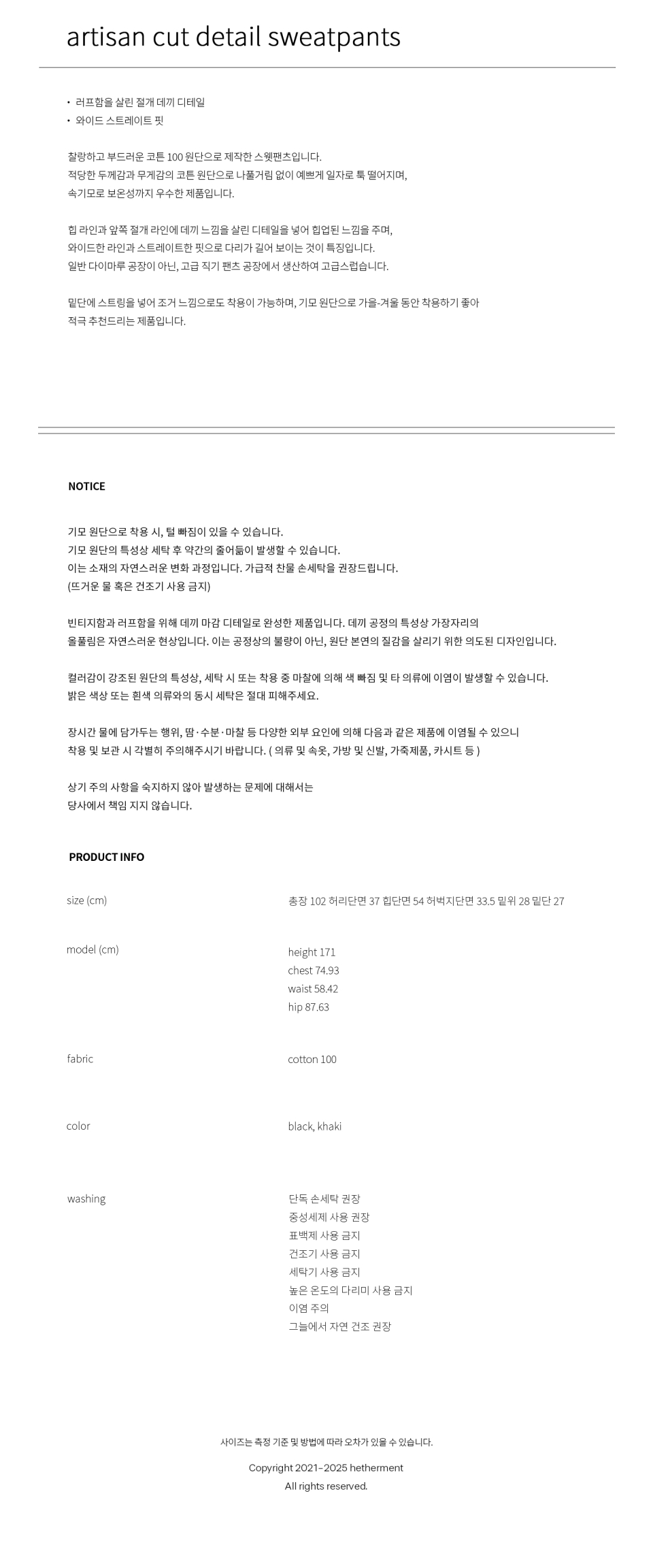 아티장 컷 디테일 스웻팬츠 (카키)