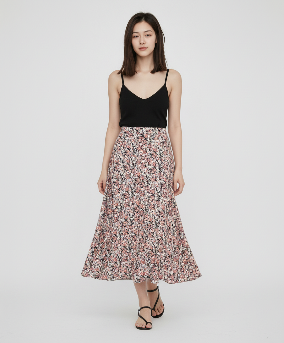블랙 플로럴 집업 롱 스커트 (321327GY15) L