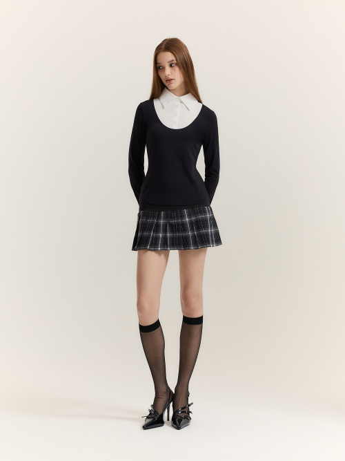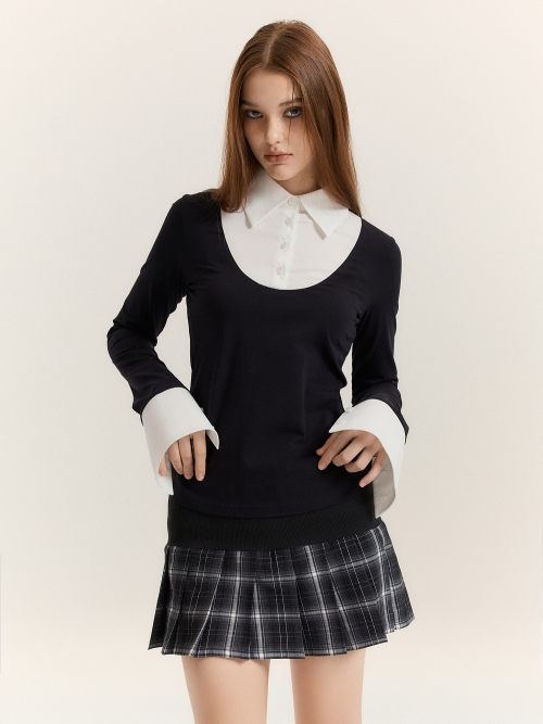 Classic Shirt-Layered Top (Black + White)