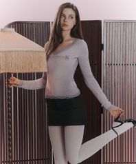 손등을 살짝 덮는 슬림 롱슬리브 디자인으로 여리한 분위기를 더합니다.