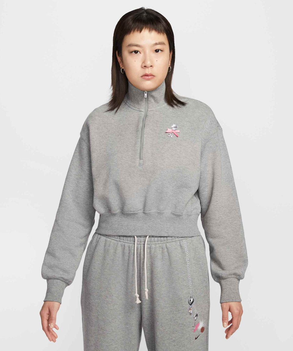 스포츠웨어 오버사이즈 쿼터집 크롭 스웻셔츠 W - 카본 헤더 / IQ3940-063