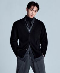 [이도현 PICK] [빅토리아 울] 미니멀 리브드 브이 넥 가디건 [블랙]