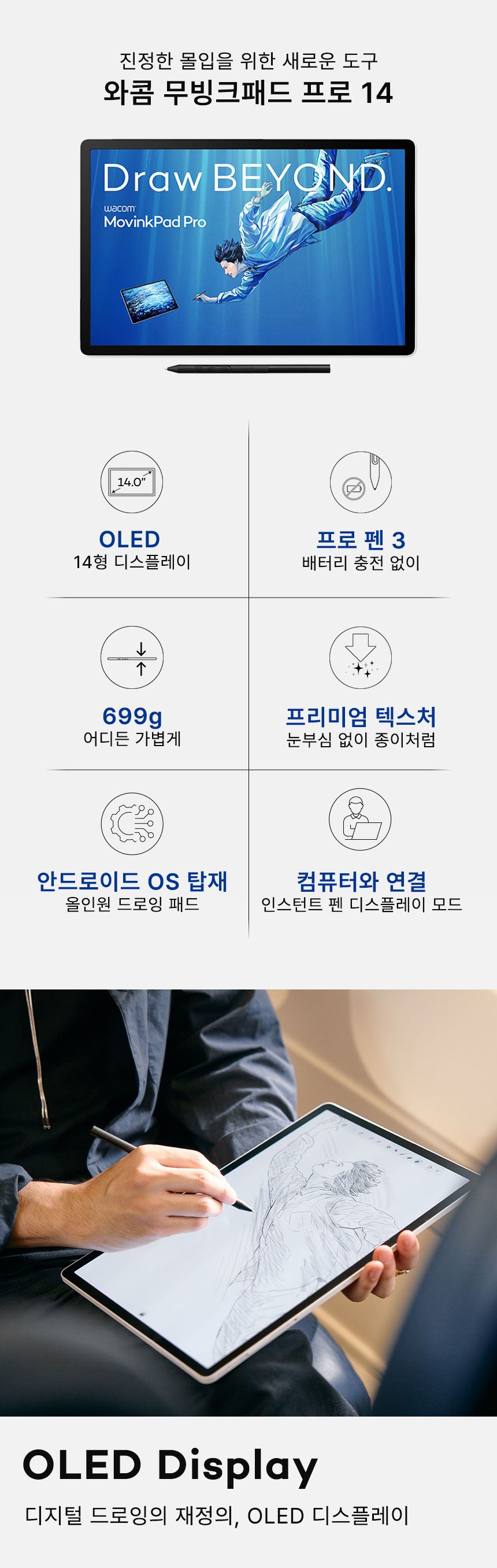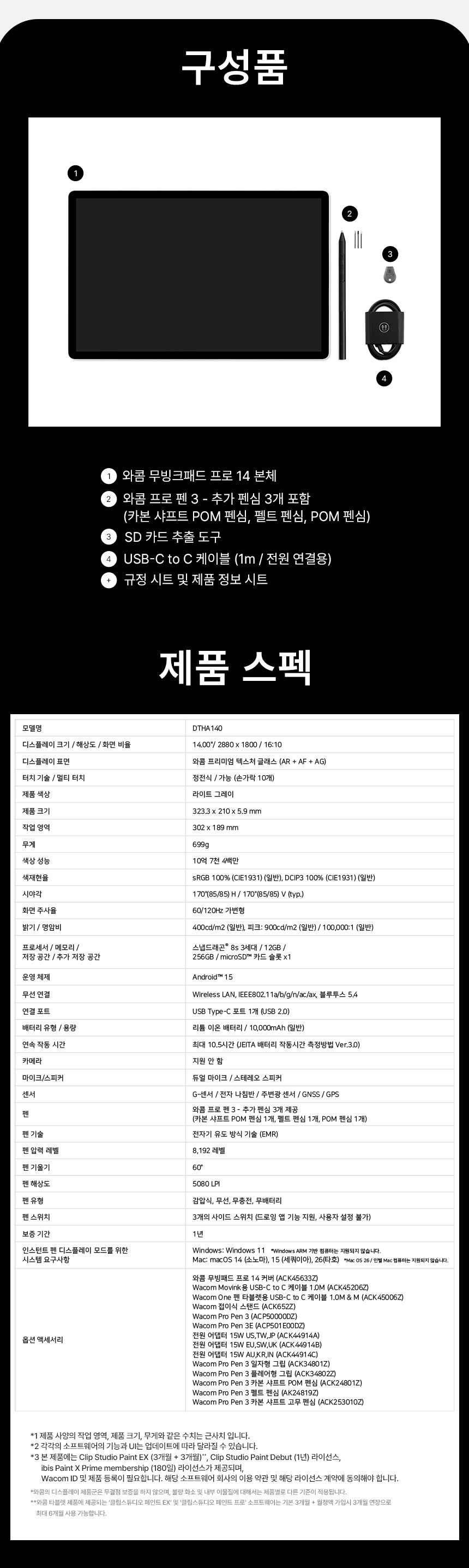 와콤 무빙크패드 프로 14 안드로이드 태블릿PC DTHA140