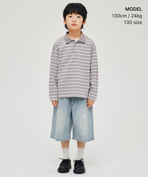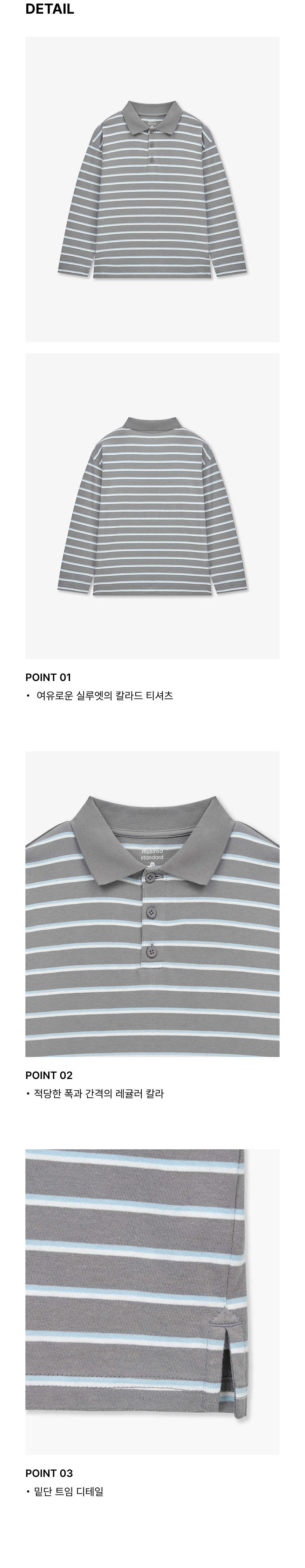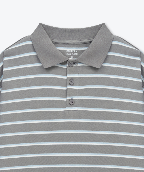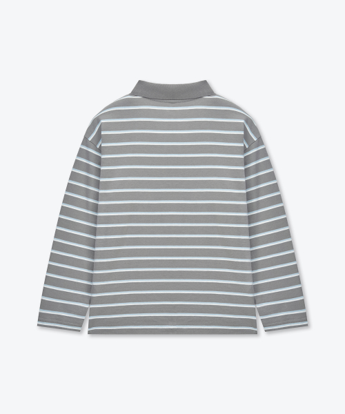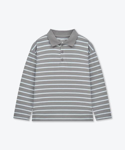 멀티 스트라이프 긴소매 칼라드 티셔츠 [그레이]