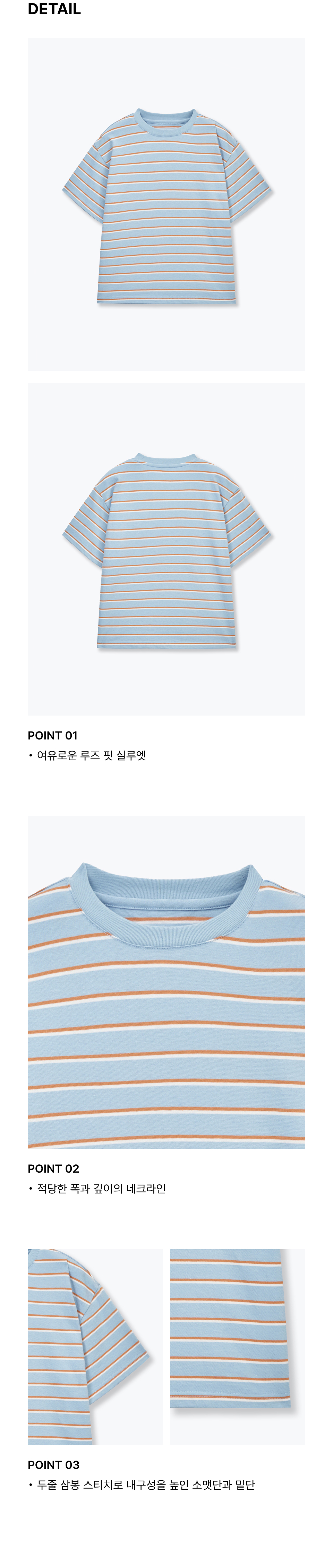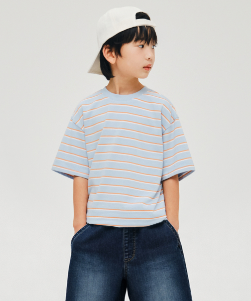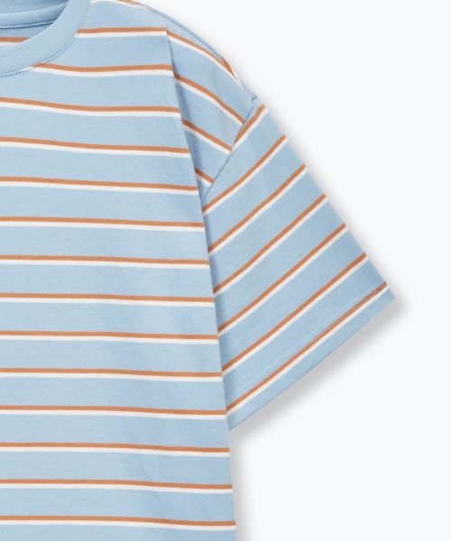 멀티 스트라이프 크루 넥 티셔츠 3 [스카이 블루]