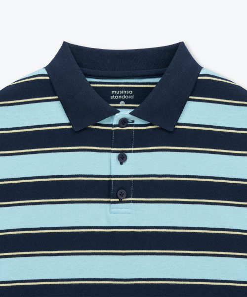 멀티 스트라이프 칼라드 티셔츠 [네이비]