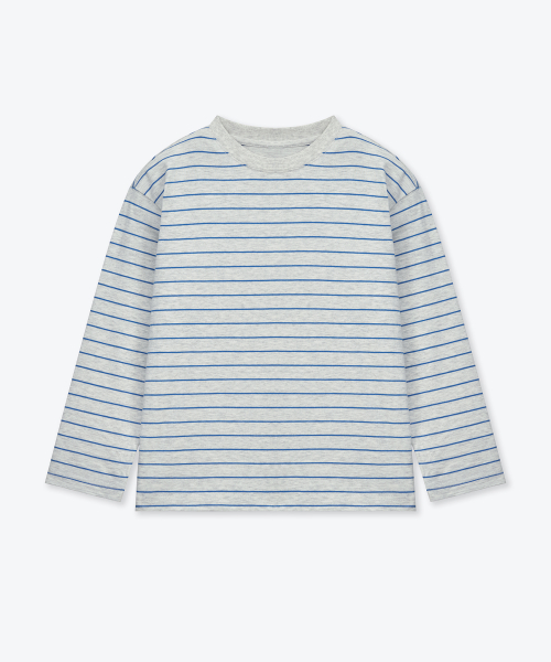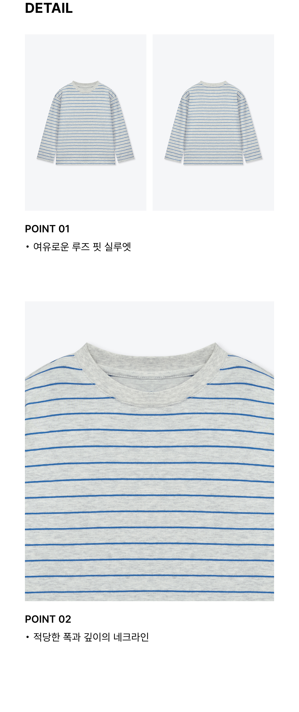내로우 스트라이프 크루 넥 긴소매 티셔츠 [멜란지 라이트 그레이]