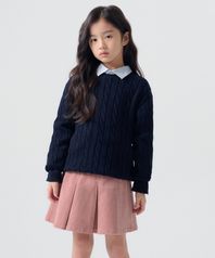 코튼 케이블 크루 넥 니트 [네이비]