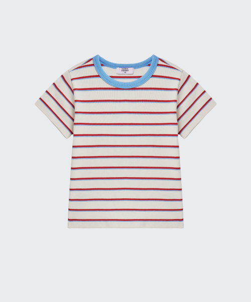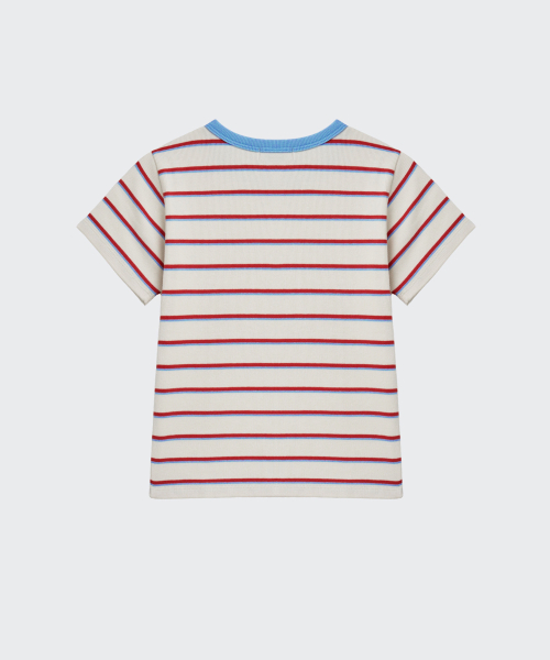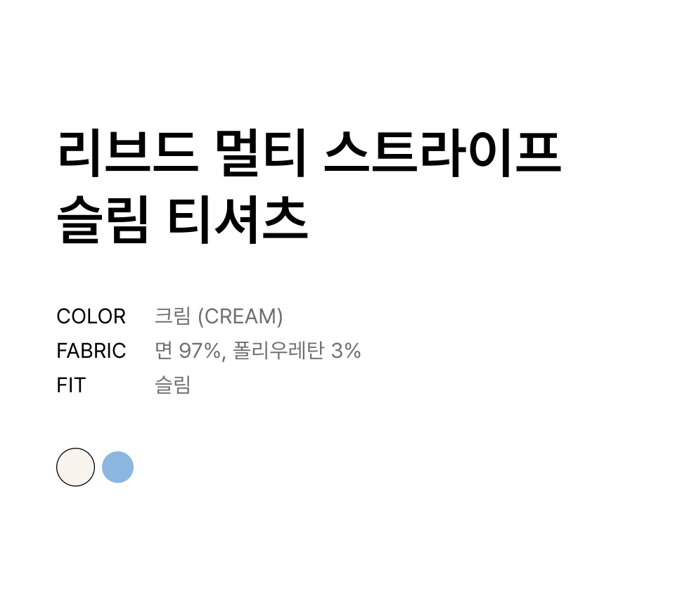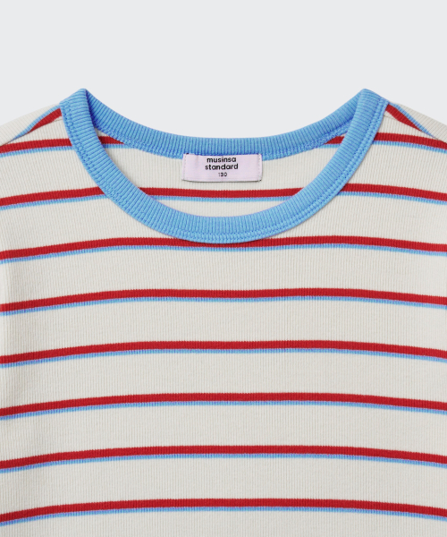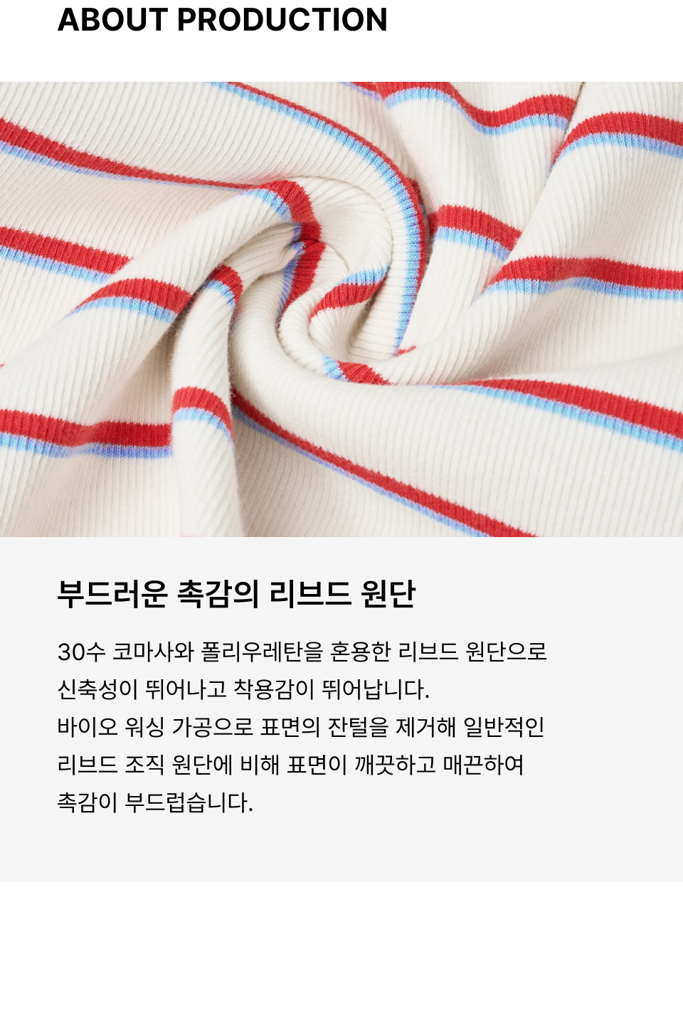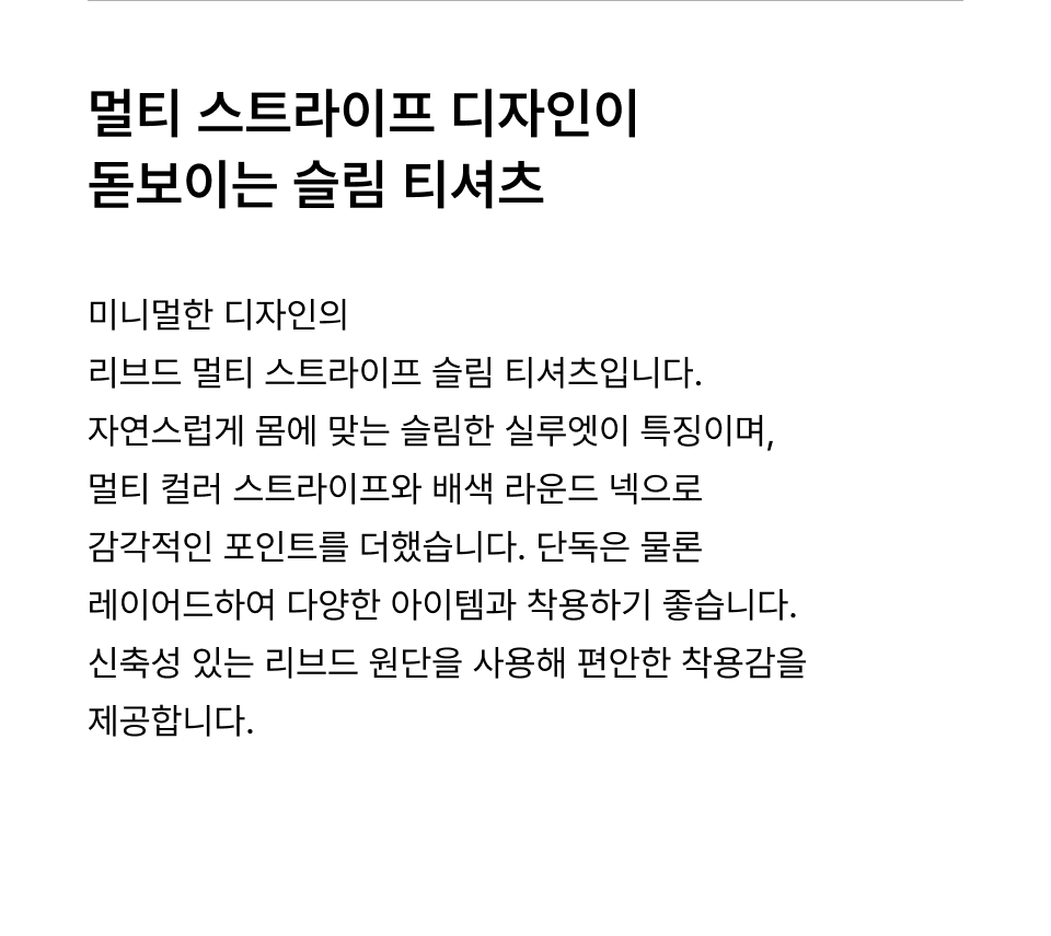 리브드 멀티 스트라이프 슬림 티셔츠 [크림]