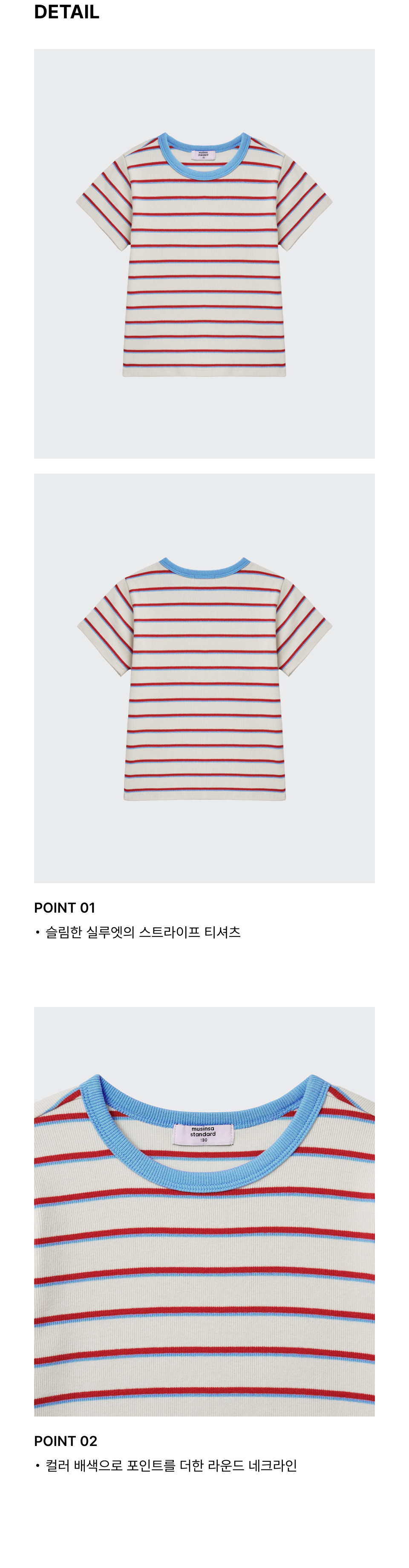 리브드 멀티 스트라이프 슬림 티셔츠 [스카이 블루]