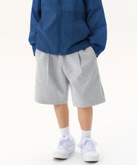 더블 니트 원 턱 와이드 스웨트 쇼츠 [미디엄 그레이]