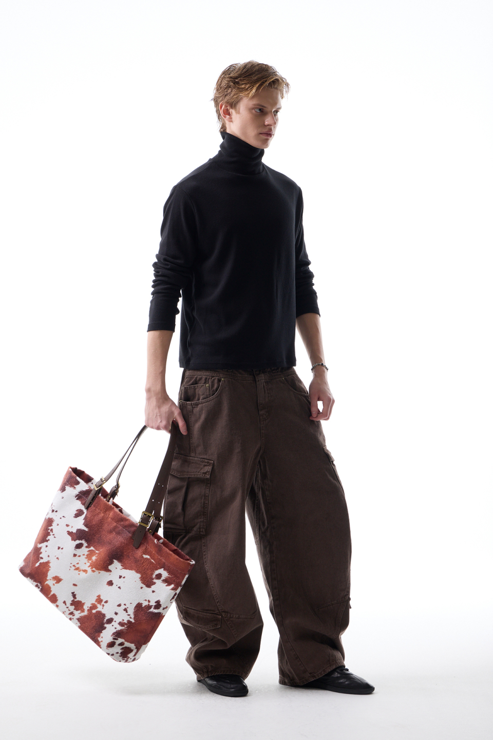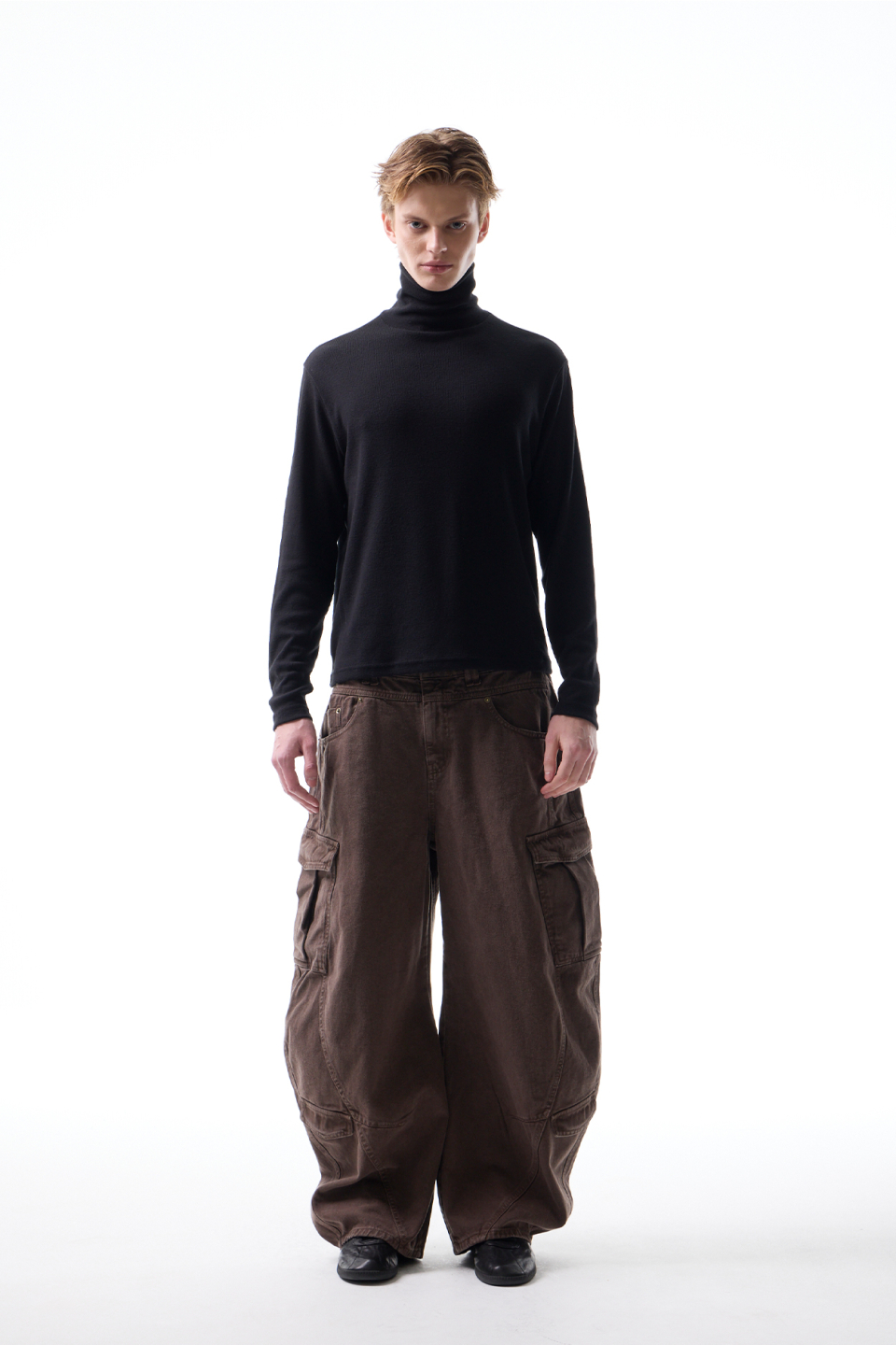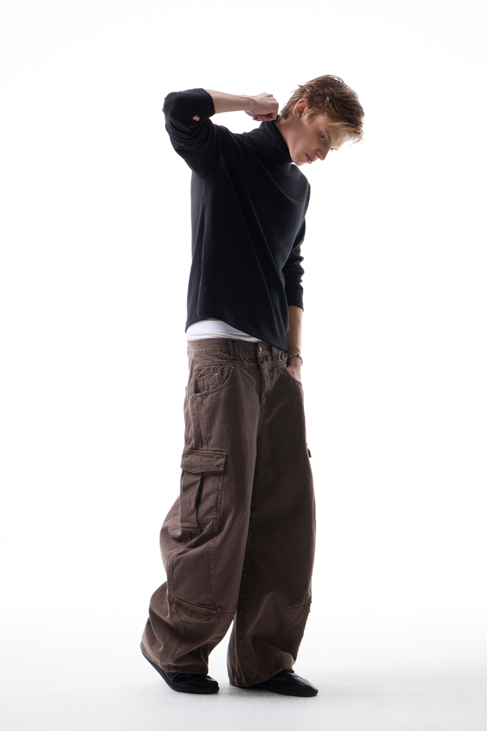 커브드 패턴으로 다리 라인을 자연스럽게 비트는 구조감