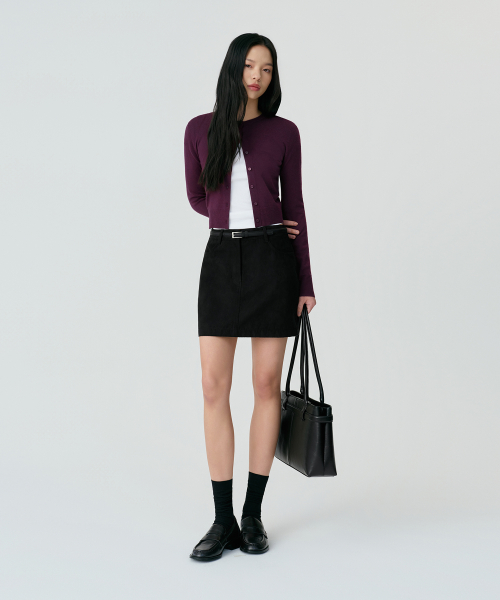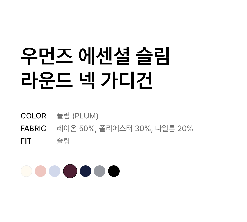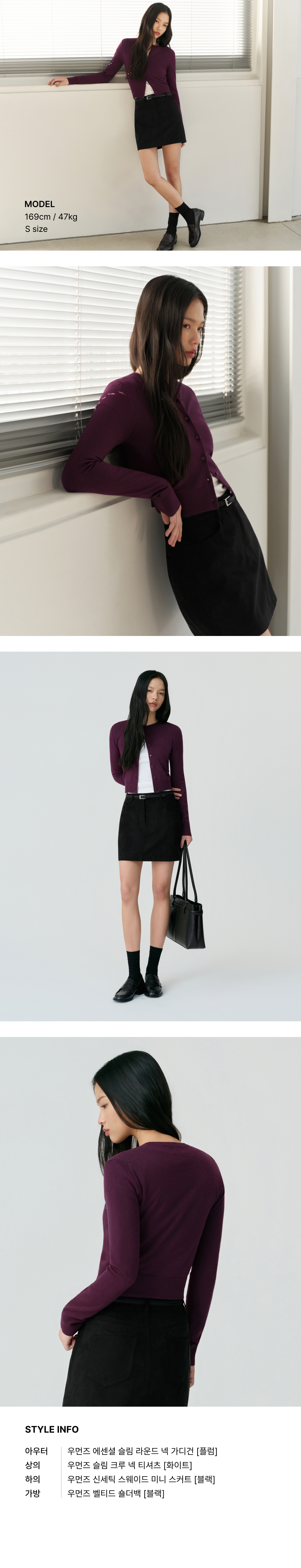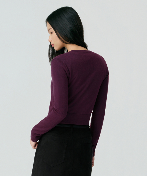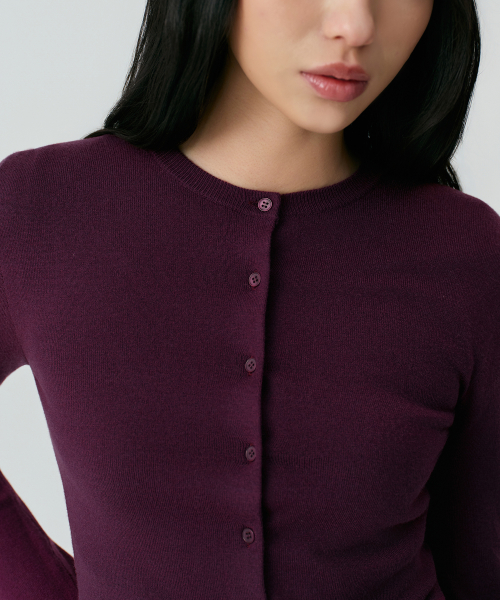 우먼즈 에센셜 슬림 라운드 넥 가디건 [플럼]