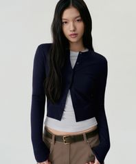 우먼즈 에센셜 슬림 라운드 넥 가디건 [다크 네이비]