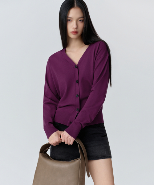 우먼즈 에센셜 릴렉스드 가디건 [플럼]
