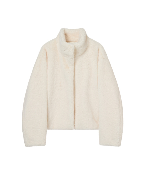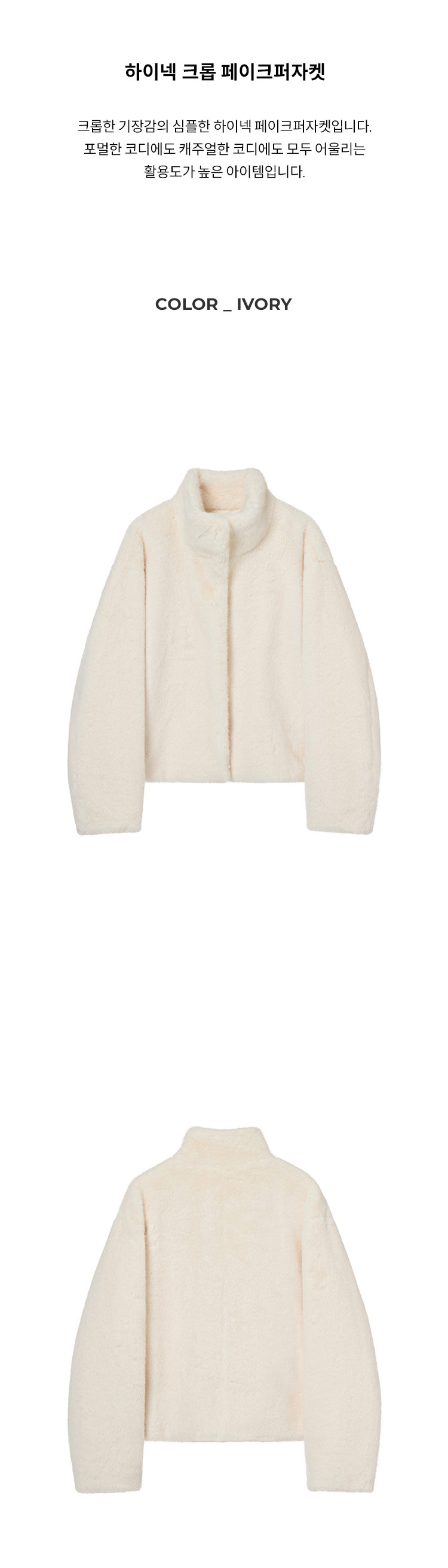 하이넥 크롭 페이크 퍼자켓 OF6XMB080