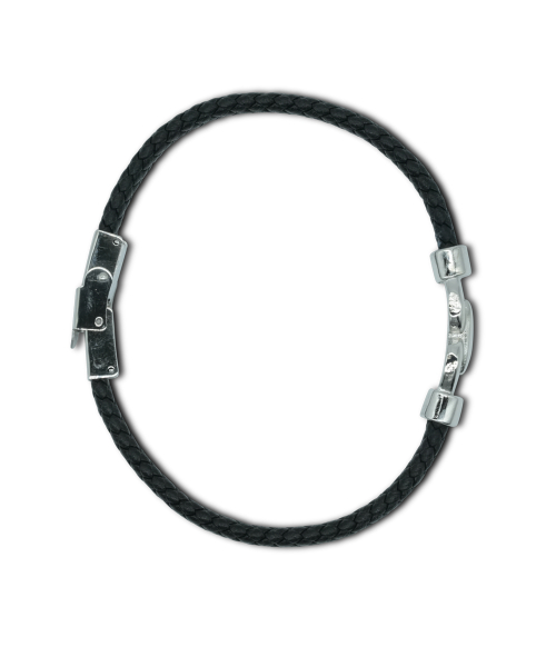 스틸 포인트 트위스티드 레더 팔찌 블랙