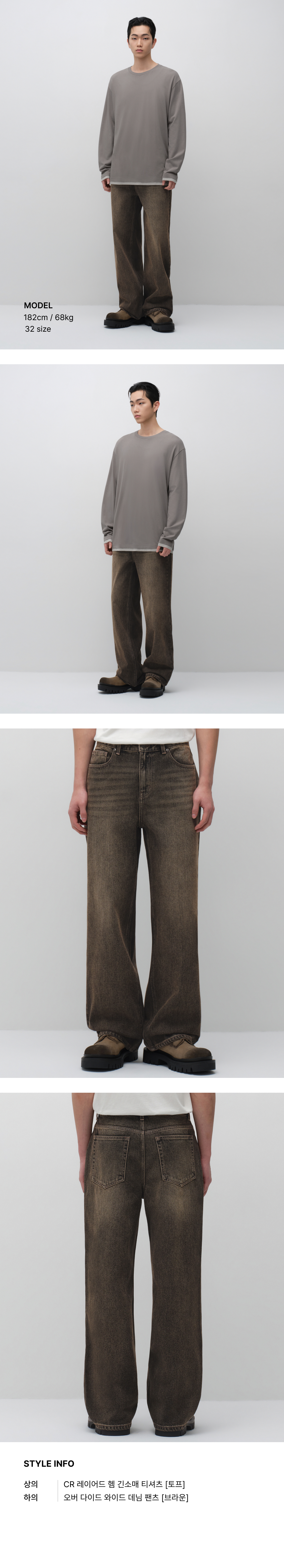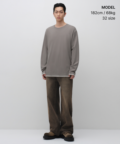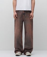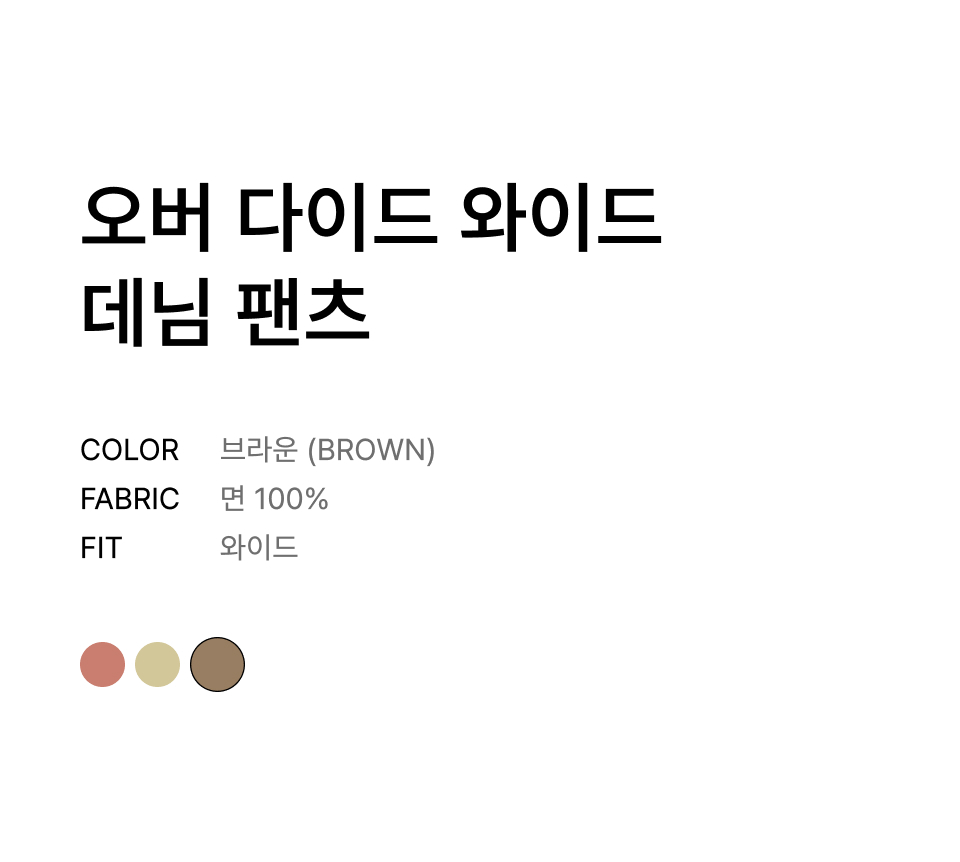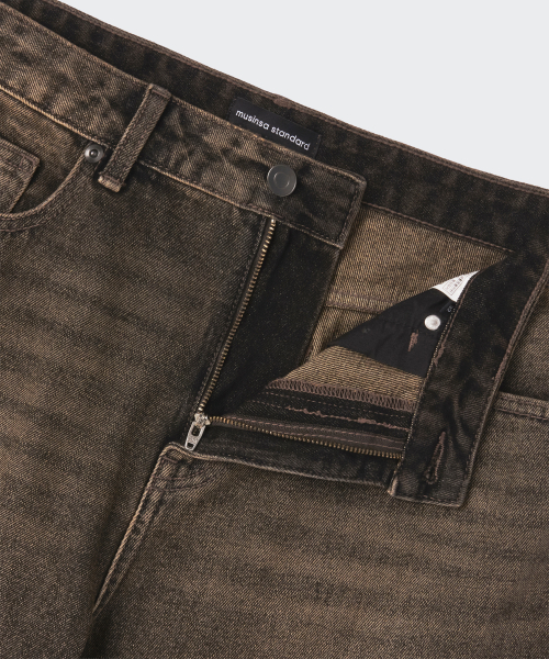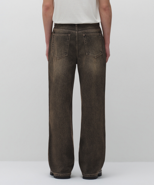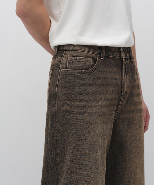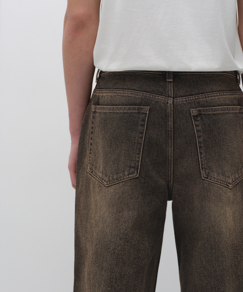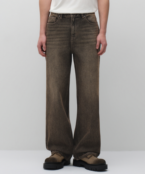 오버 다이드 와이드 데님 팬츠 [브라운]