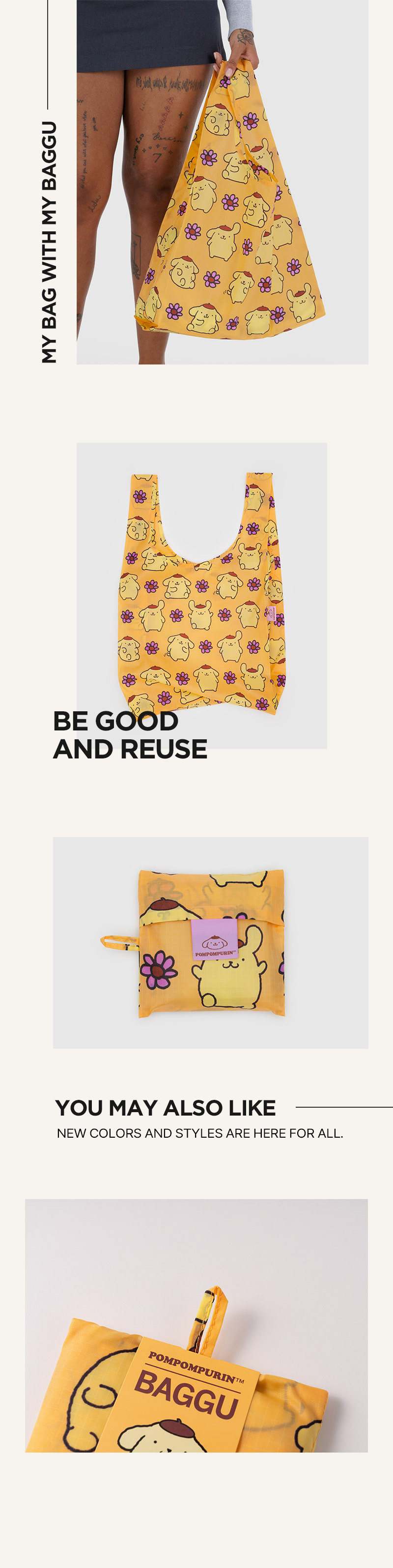 바쿠(BAGGU)는 2007년 미국 뉴욕 브루클린에서 창립된 브랜드로, 일회용 비닐 사용을 줄이자는 취지에서 시작된 친환경 브랜드입니다. 모든 사람들이 바쿠의 가방을 한 개씩 갖게 하겠다는 회사의 비전처럼 합리적인 가격과 데일리 룩에 어울리는 화사한 디자인, 튼튼한 소재로 만들어 실용적인 가방을 추구합니다.