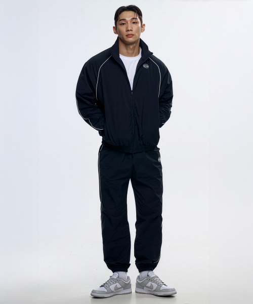 P2452 파이핑 윈드브레이커 조거팬츠 [블랙]