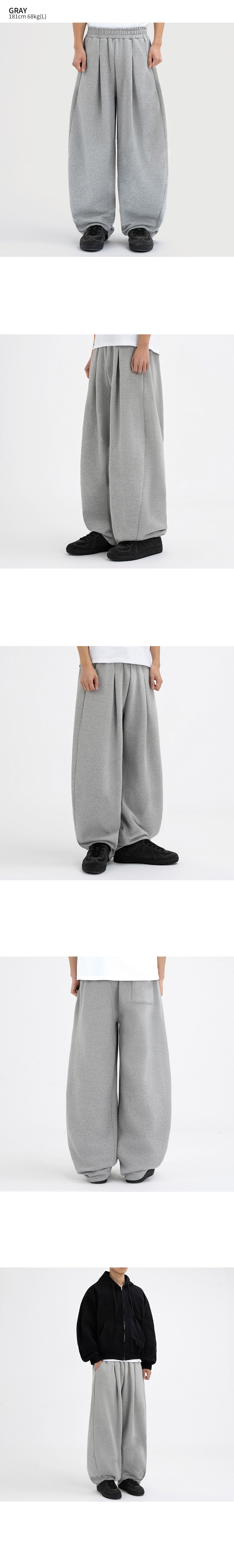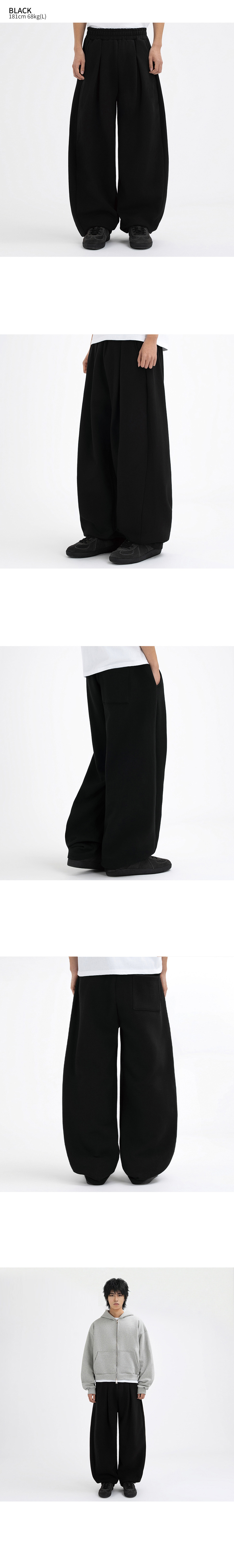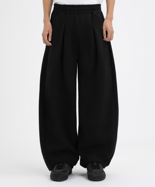 커브드 사이드 핀턱 벌룬 스웨트팬츠 GLP-650_블랙
